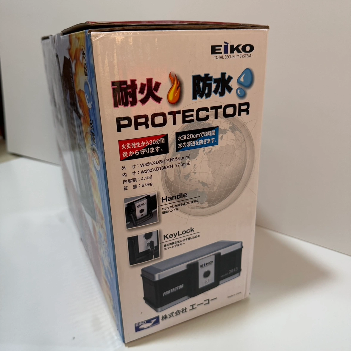 EIKOの耐火防水プロテクター金庫 2013です。 定価20,900円 https://www.eiko.co.jp/safe/subcategory/16/product-type/37/lock-system-type/42 新品購入致しましたが使わないので出品させて頂きます。上の蓋だけ(お写真7枚目まで)開封しましたがお品物に被さっております透明ビニールなども未開封のままです。自宅保管品です。 よろしくお願い致します。