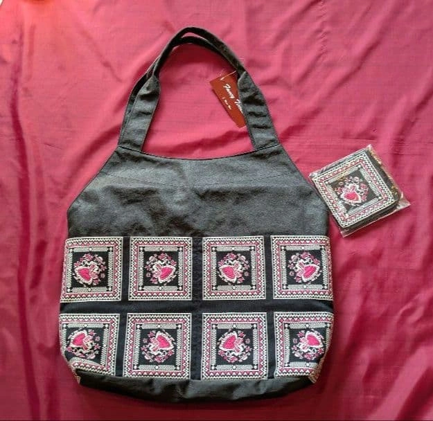 ☆新品未使用!久家道子さん刺繍デザイン♪上質な 黒地トートバッグ&コインパース☆