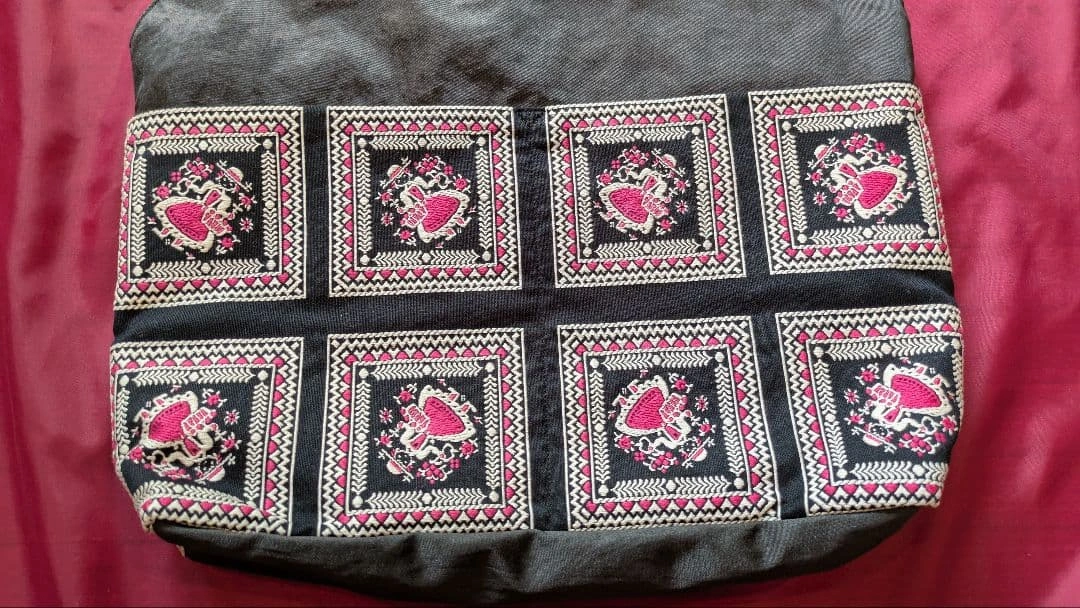 プチポワン 久家道子さん刺繍  新品未使用 トートバッグ&コインパース どなたかお役立てくださいませ。 久家道子さん大ファンの母がいただいたものです。 母には可愛いすぎるお色なため、どなたかにお使いいただきたく、出品させていただきます。 かなり上質なタフタのようなお生地に、久家道子道子さんの刺繍が縫い付けられています。 前後ろともに、刺繍四角形の部分がポケットになっています。 内部は、大変丁寧に作られており、黒いチャックには、黒いリングがついています。 内側はチャックポケットと、ペンや携帯入れるポケットがあり、 バッグ内部はチャックで閉まるようになっています。 (写真のハンドクリームは見本です) サイズ  幅39 縦34 マチ7 柄の長さ50 とても素敵なデザインです。 コインパースは、8センチ 四角形の2面があきます。 こちらで検品はしていますが、気がつかない汚れ、キズ等は、お安くしていますので、どうぞお許しくださいませ。 当方ペット、喫煙者おりません。 しばらく自宅保管の品です、神経質な方、新品同様をお求めの方はご遠慮くださいね。 他にも色々出品しています、よろしければ、のぞいてくださいませ。 ありがとうございました!