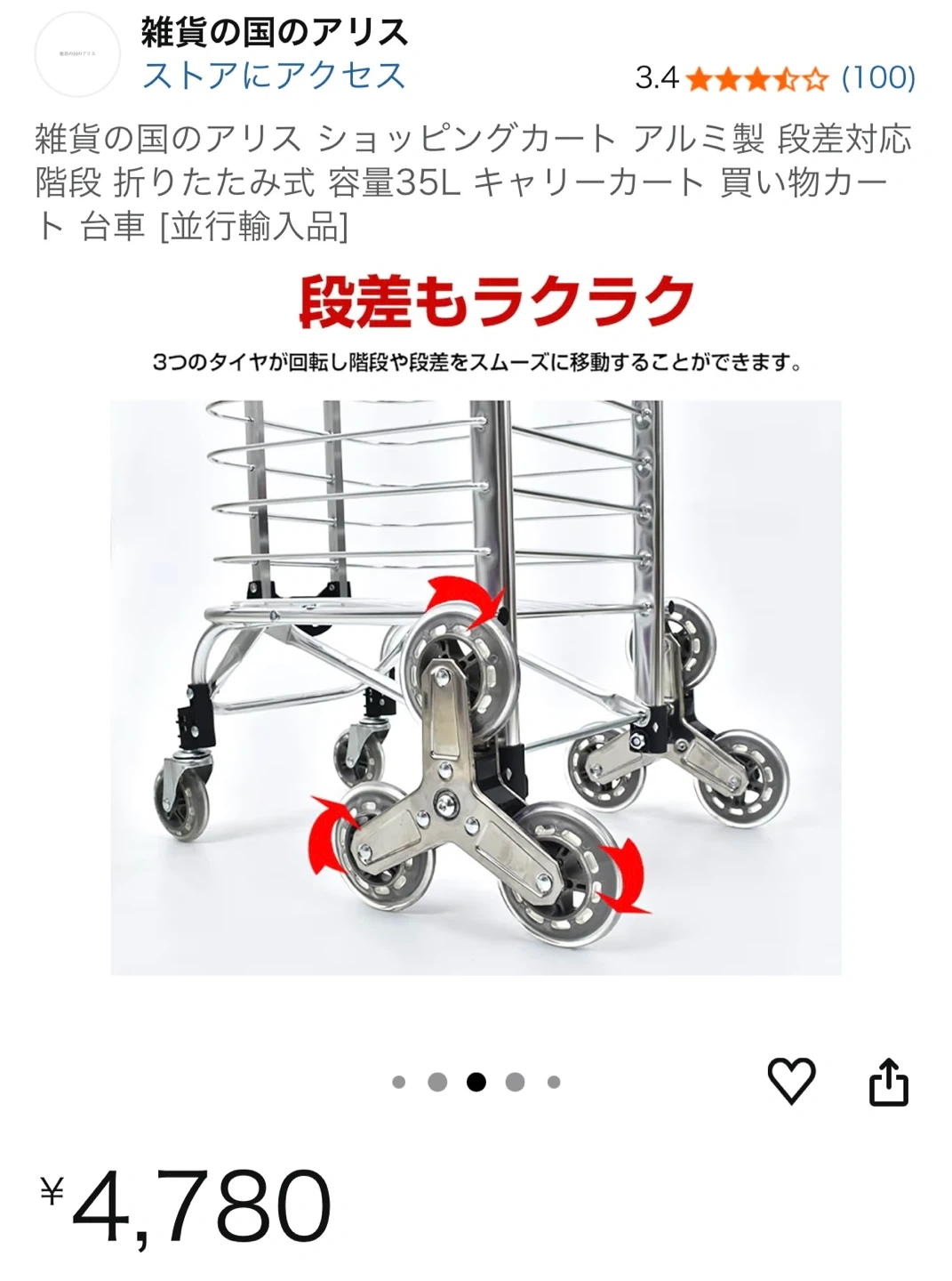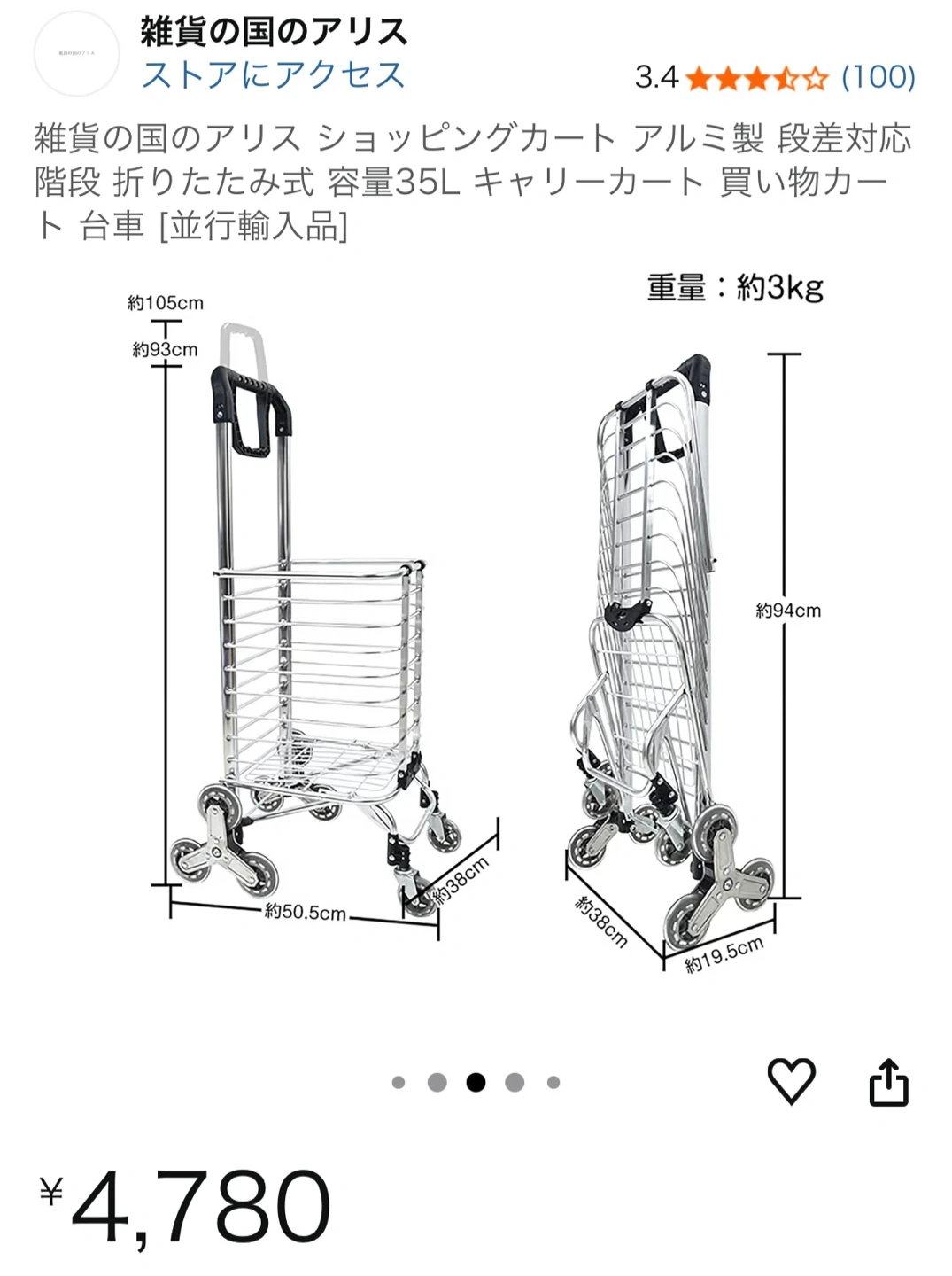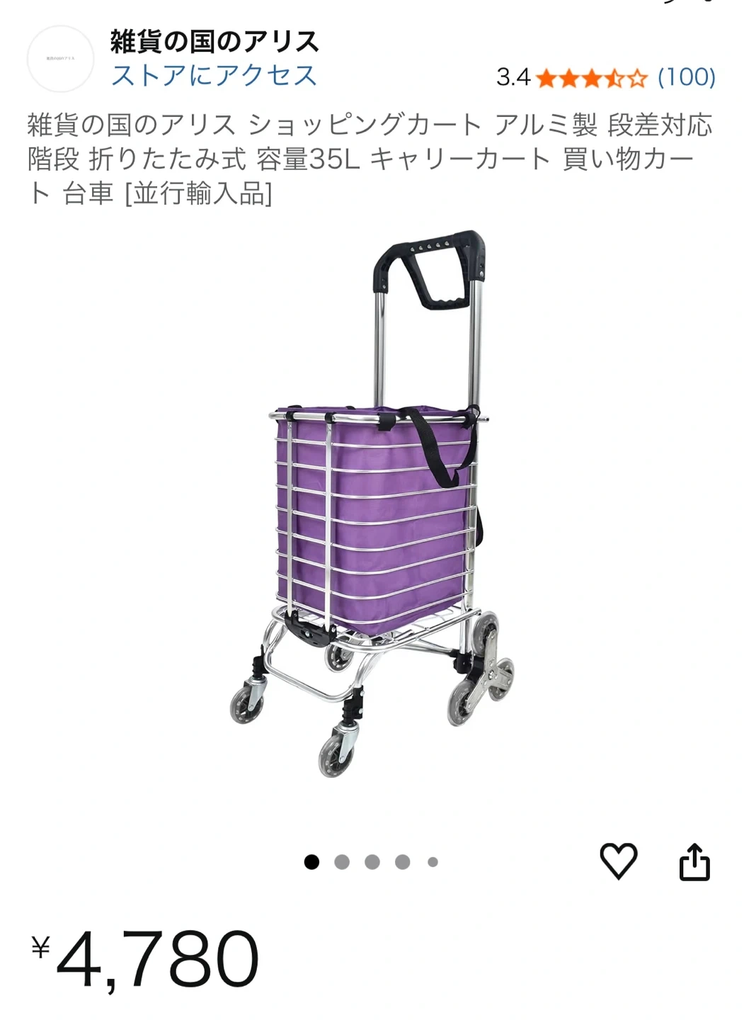 アルミ製のショッピングカートです。 ・ブランド:ザッカノクニノアリス ・アルミ製 ・折りたたみ式 ・容量35L ・階段、段差対応 ・重量:約3kg 新品未使用品です。