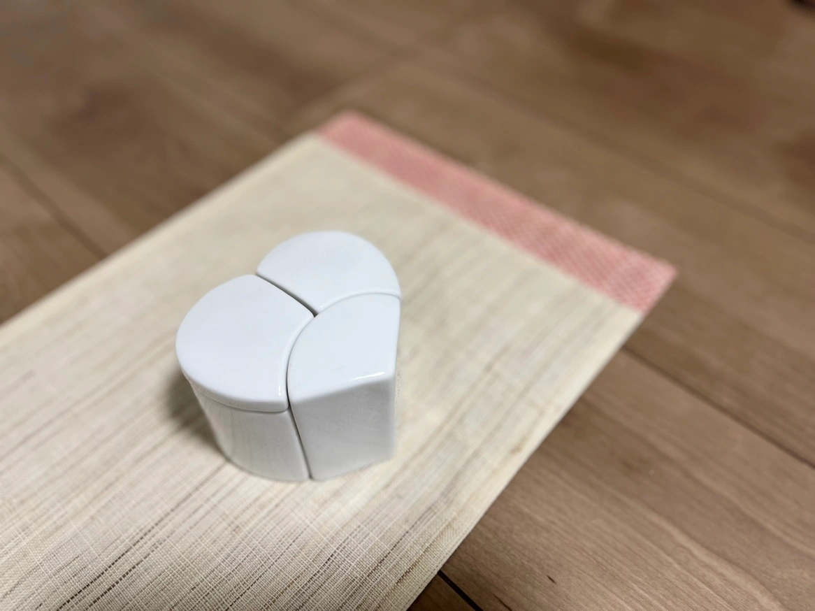 品未使用の白いハート型の調味料入れです。 3個を合わせるとハートの形になります♪ 食卓に、インテリアに、可愛らしい一品です。 【サイズ】 組み合わせた時 W9.2×D8.8×H8㎝ ソルト&ペッパー W5.5×D3.8×H7.8 醤油・ソース差し W5.2×D6.4×H8 駒沢公園西口入口付近でお引き渡し希望です。 ご不明点などございましたらお気軽にご連絡ください。