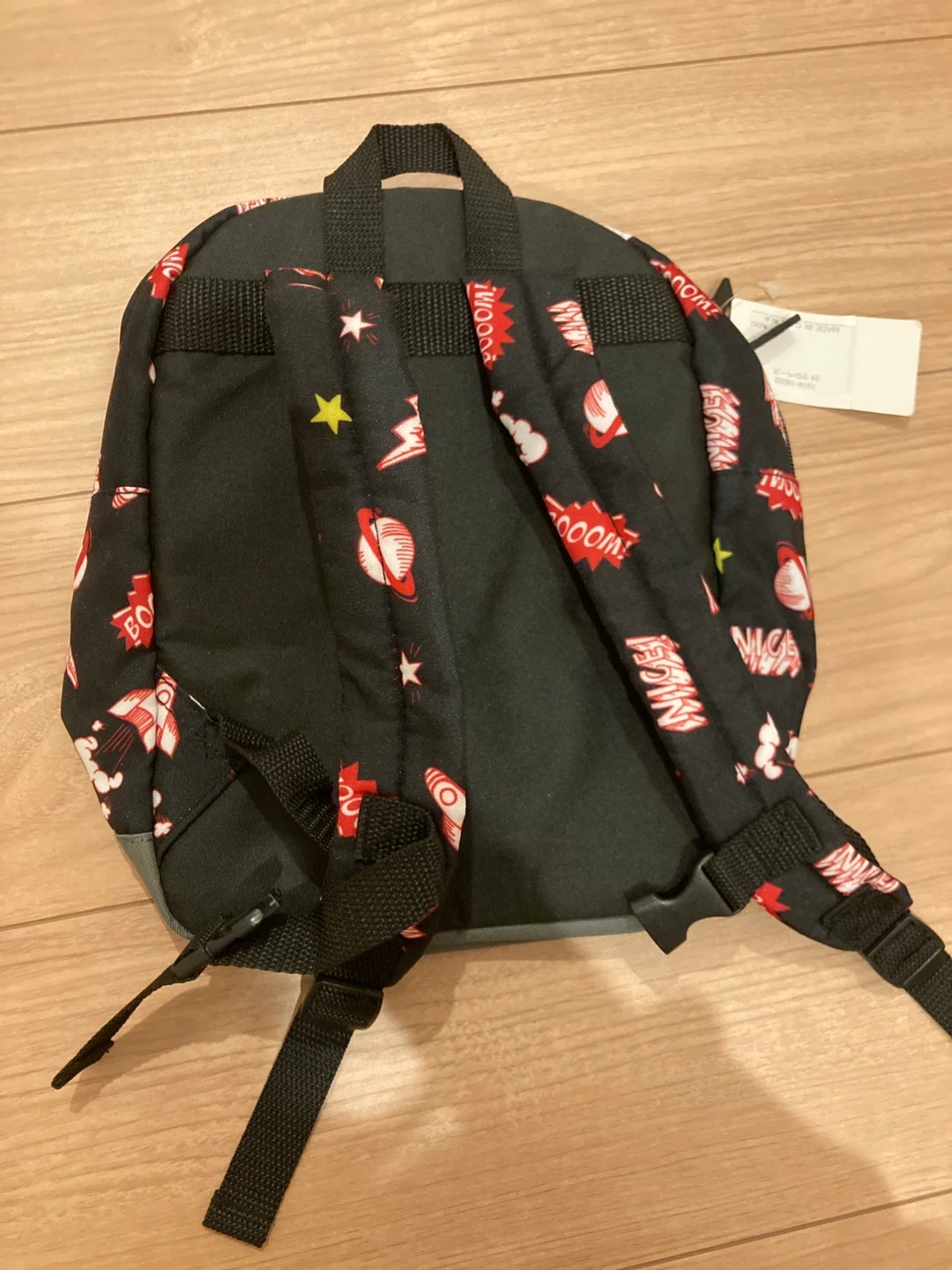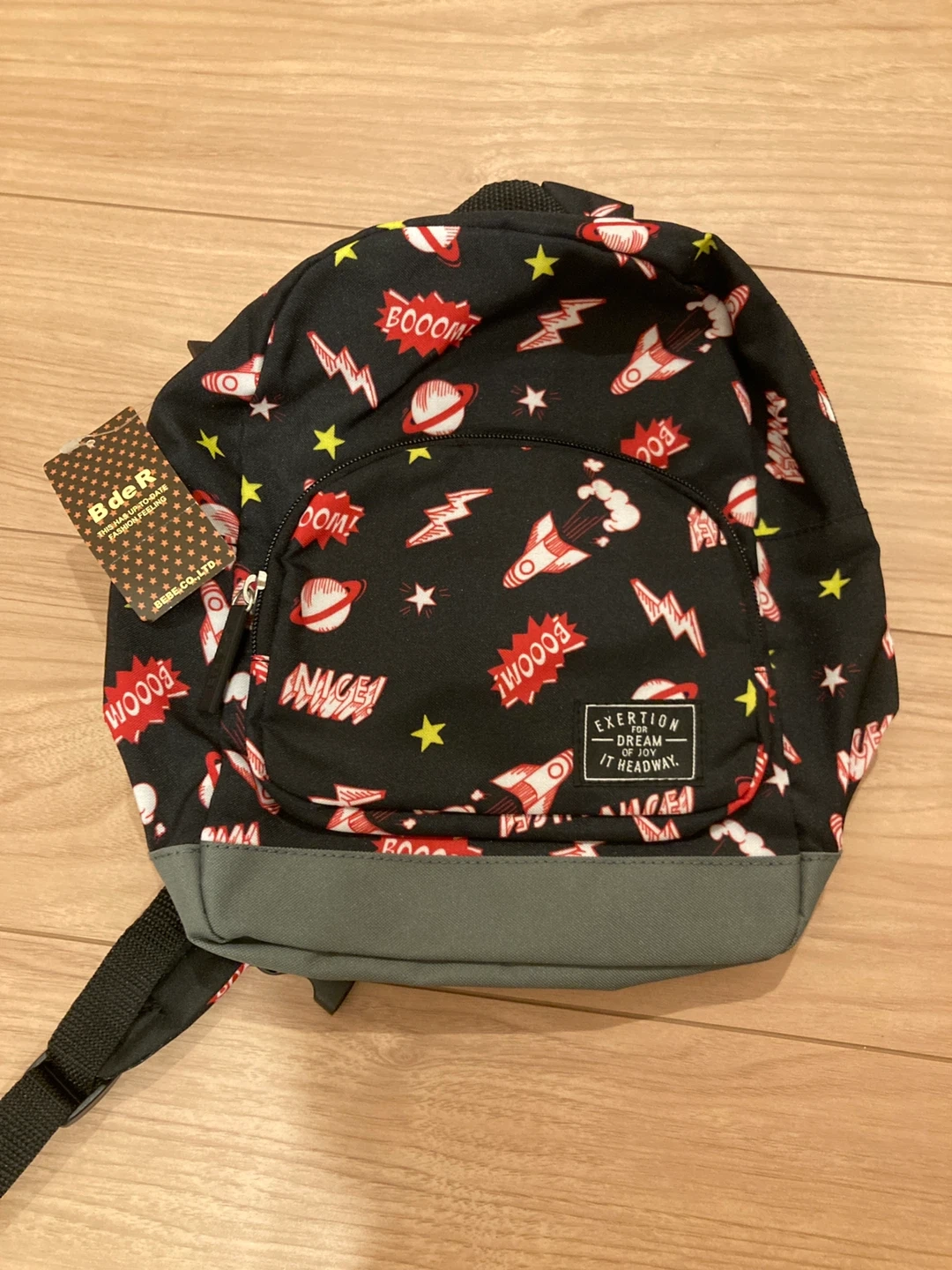 BEBE ベベのリュックです(^^) 黒地にロケット柄でおしゃれでかわいいです⭐︎ 新品未使用なのでどなたかお使いいただける方よろしくお願いします! まとめてお値引きします。 高円寺学園付近まで取りに来ていただける方よろしくお願いします。 ・ブランド:ベベ ・色:ブラック ・柄:ロケット、星 ・状態:新品未使用 ・サイズ:高さ約27cm、幅約20cm、マチ約9cm お誕生日 バースデー 一升餅 一歳 一才 保育園 幼稚園