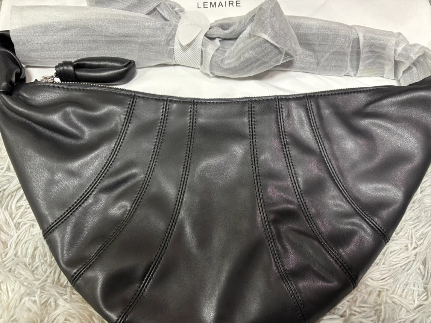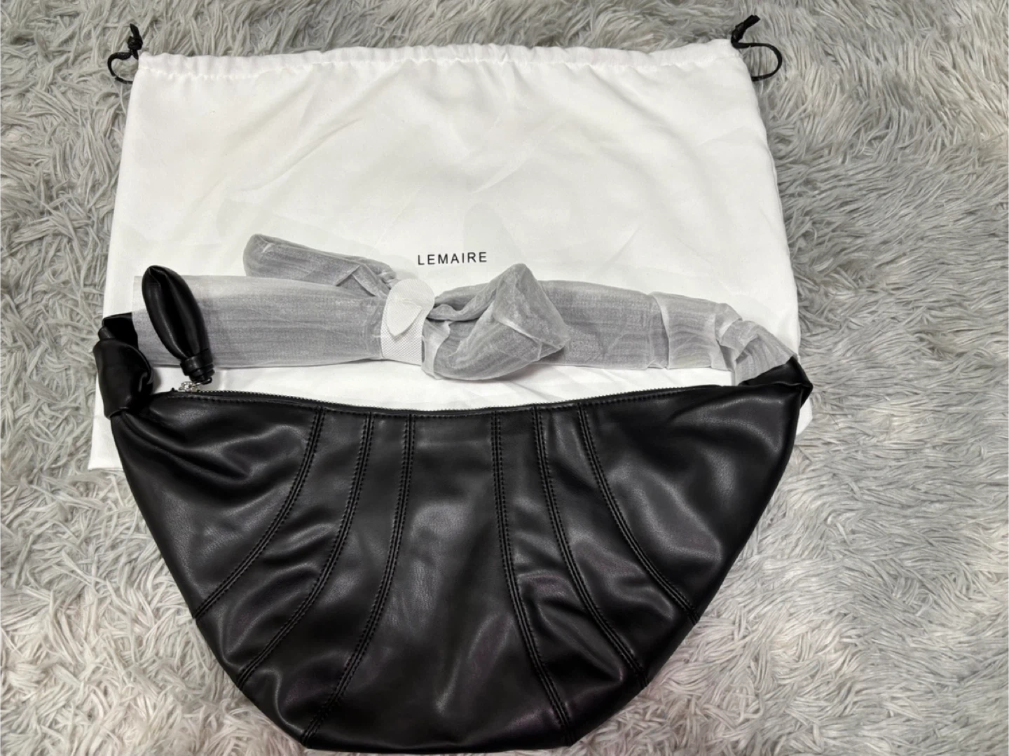 ルメールのクロワッサンバッグです。 カラー:ブラック サイズ :M サイズ詳細: 上横幅約44cm 底横幅 約14cm 厚み約10cm ハンドル約42 cm 高さ約20cm 付属品:専用袋 状態: 試着のみ未使用品 公式サイトで購入し、試着のみの品物です。サイズが合わなかったため出品いたします。 タグはカットしてしまいましたので、その分お安く出品しております。 恐れ入りますが、値下げ交渉はご遠慮ください。 人気商品なので早い者勝ちでお願いします。