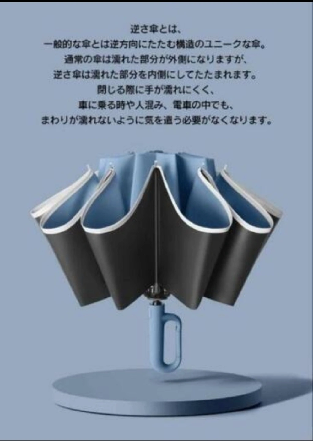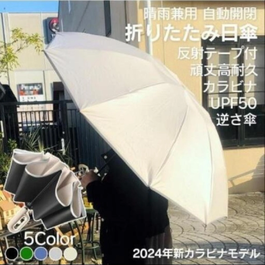 新品未使用 折りたたみ傘 晴雨兼用 逆折り傘なので、収納時、手が濡れません。 ワンタッチ開閉機能 ・晴雨兼用 ・反射テープ付 ・カラビナ付 ・UPF50 ・2024年新カラビナモデル ・重量: L 約580g ・サイズ: L 展開時 約135cm, 収納時 約42cm ご希望の候補日時お知らせください。
