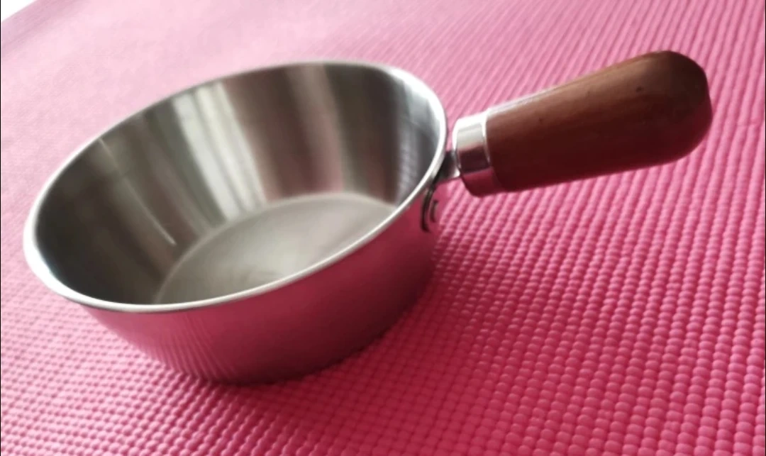 新品未使用【木製ハンドル付き】ポータブル ステンレス製 キャンプ用鍋 銀色-