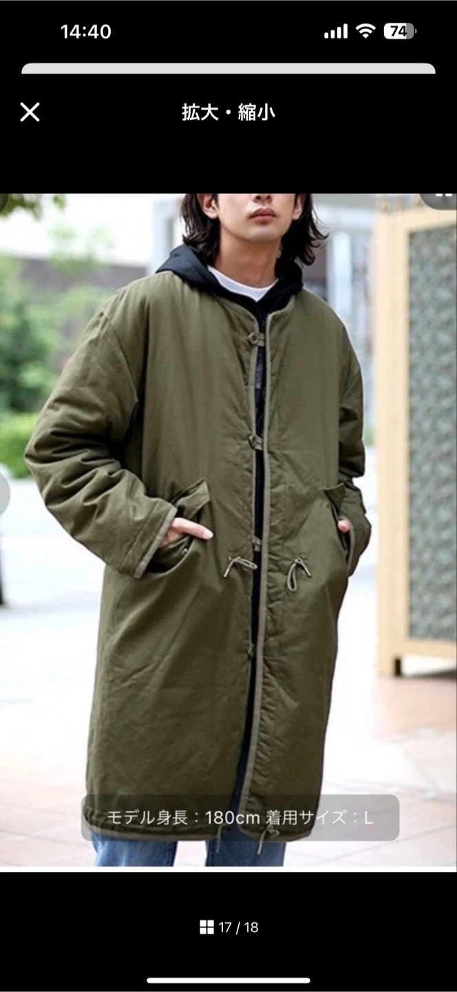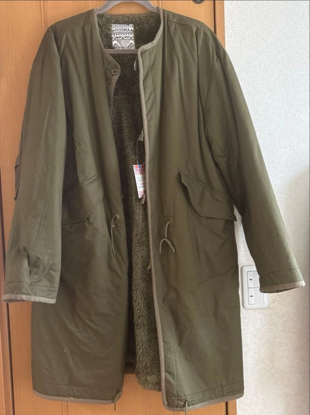 あたたかさチチカカの2WAYミリタリーコートです。 ・色:カーキ ・サイズ:M ・型番:MKWJCC601 B 着丈約98、身幅60(平置き素人採寸) 定価9889円 他のサイトにも出品していますので急な削除あります