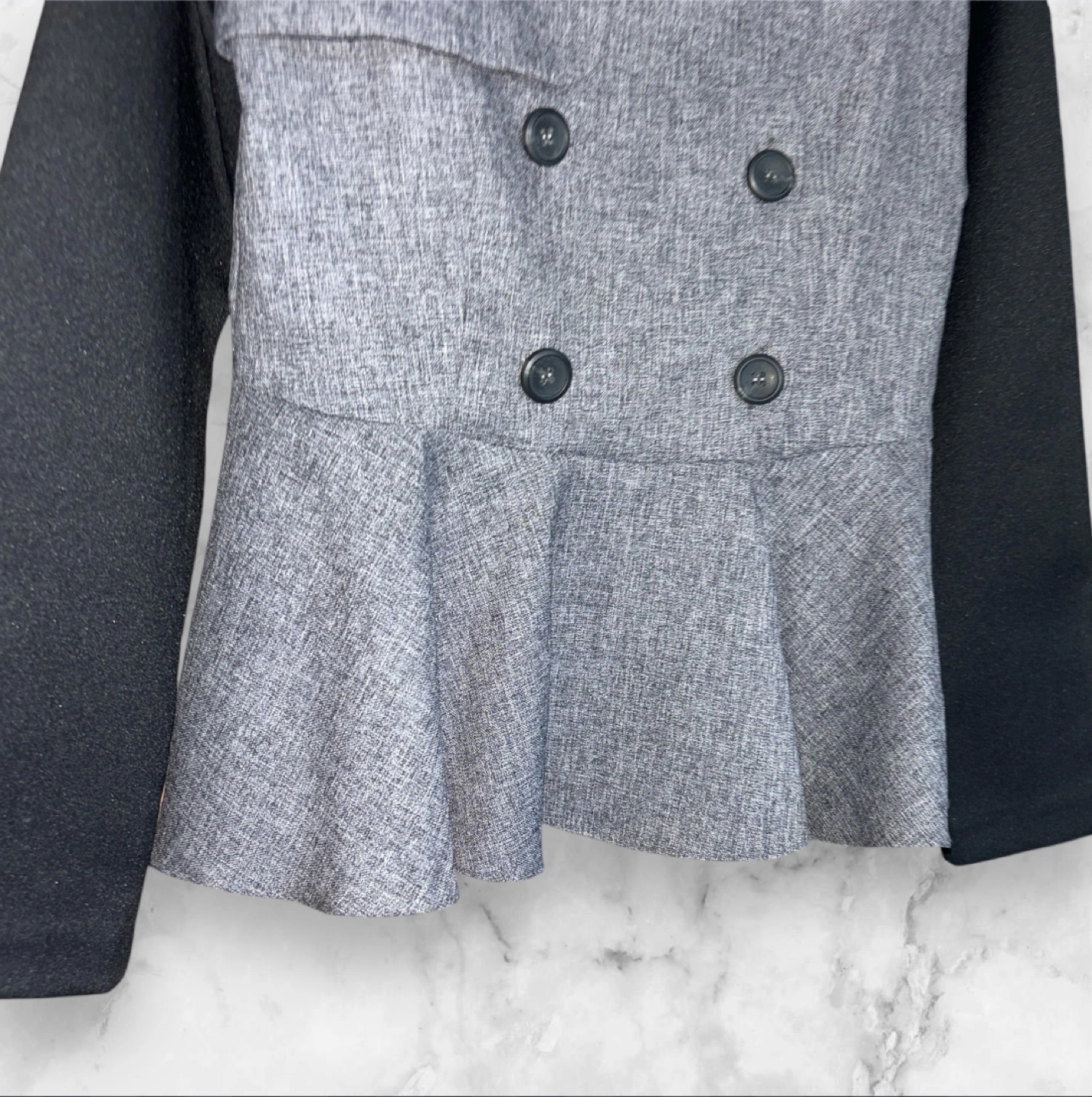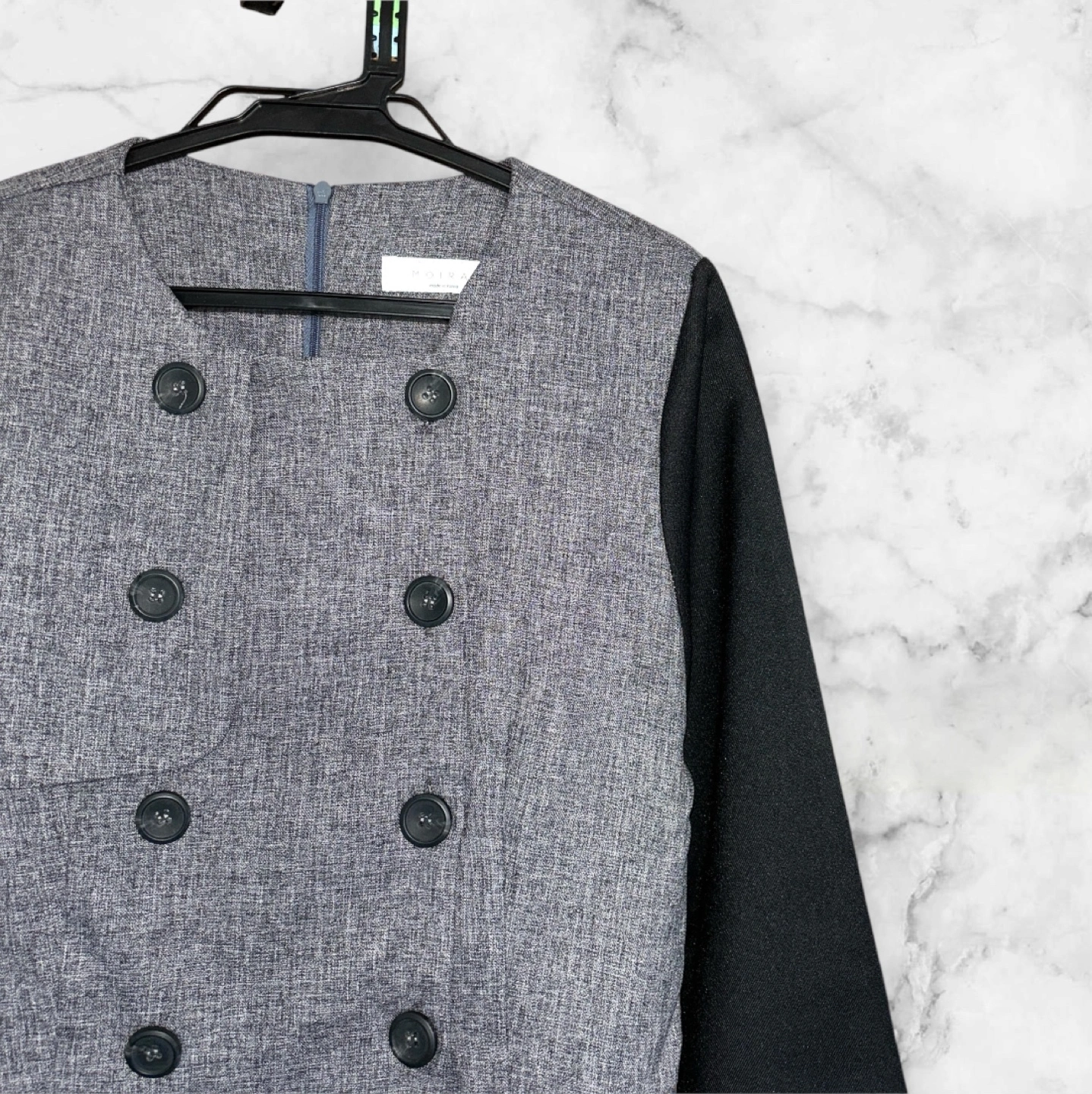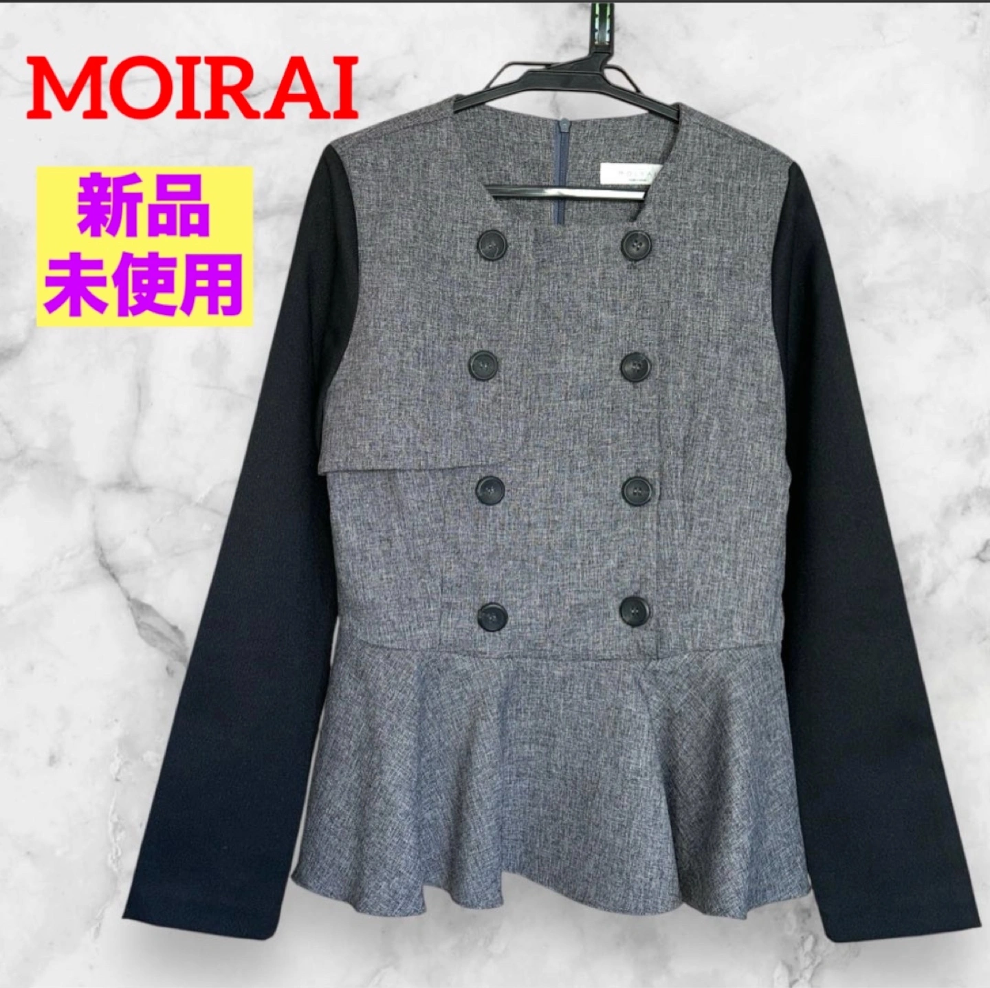 MOIRAI ペプラムチュニック レイヤード風 トップス プルオーバー ☆新品未使用 とても可愛いくオシャレな一品です♡ ☆レディース ☆カラー…ブラック×グレー ☆サイズ(表記なし) 肩幅…33.5cm 身幅…42cm 袖丈…58cm 着丈…56cm ※採寸上、多少の誤差がありますのでご了承ください ☆デザイン…ダブルブレスト ボタン4つ、デザインボタン4つ ☆開閉方法…ファスナーとボタン ☆襟の形…ラウンドネック 【スタイリッシュなデザイン】 このチュニックは、グレーと黒のコンビネーションが特徴で、洗練された印象を与えます。ペプラムデザインにより、女性らしいシルエットを強調します。 【機能的なディテール】 プルオーバーでファスナーとボタンの開閉方式で、着脱も簡単です。 【快適な着心地】 長袖のデザインは、季節を問わず着用でき、さまざまなスタイルに合わせやすいアイテムです。 他サイトでも出品中です。 他で売れた場合、急に削除しますので、ご了承ください よろしければ他商品もご覧ください! まとめての購入、大歓迎です! まとめてご購入の場合、割引させていただきます! よろしくお願いします→ #彪愛