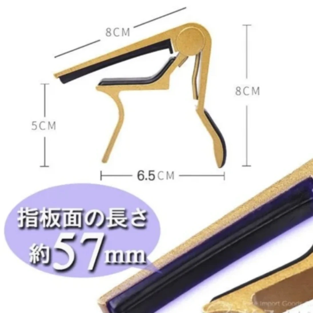 お取引場所🔁は幡ヶ谷から自転車🚲️で5分程度以内の場所なら行けます🥳(初台、西原、笹塚、方南通り、中野通りなど) 【商品情報】 ・片手でワンタッチ着脱が可能で、グリップ力の強い初心者から上級者まで幅広くお使い頂けるギターカポタストです。 ・ワンタッチのバネ設計だから片手で装着する事ができ、どのギターにも素早くセット可能 ・強力ホールドで装着時にチューニングを狂わせることなく、きっちり弦を押さえつけます ・指板面とネック面にはシリコンを使用しているので、大切なギターを傷付けることがありません ・強力なホールド力で弦を押さえつけるからビビリが出にくい設計になっています ・指板面の長さが約57mmあるので、エレキはもちろんアコギやクラシックでも十分対応します ●対応楽器 ・フォークギター ・エレキギター ・アコースティックギター ・クラシックギター ・ウクレレ ※お手持ちのギターの種類によっては対応出来ないものもございます。 ●寸法 / F(フリーサイズ) 商品全体サイズ(高さx横): 約8cm x 約8cm 指板面の長さ: 約5.7cm