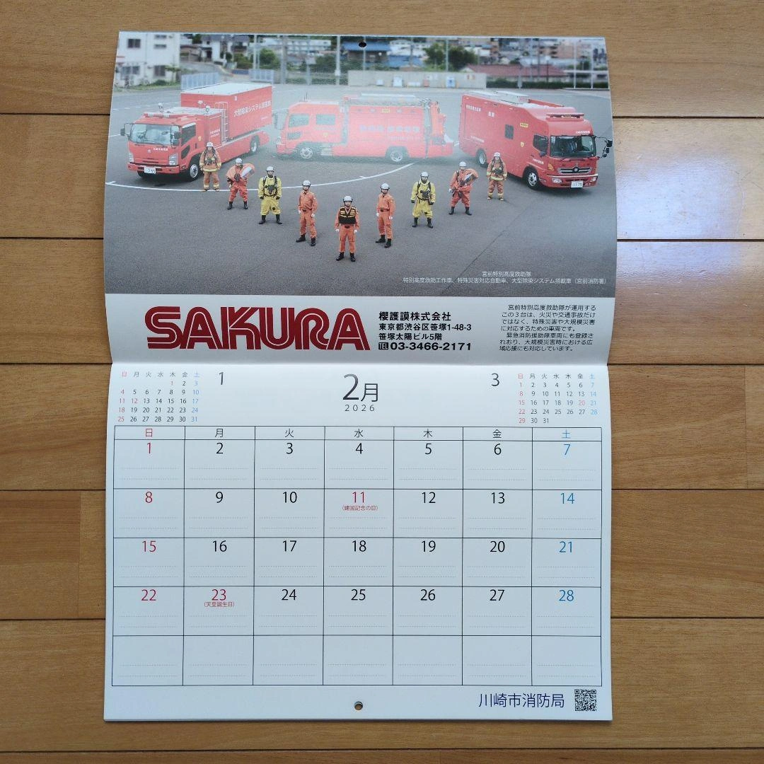 川崎市消防局 2026カレンダー カレンダー/スケジュールの種類···カレンダー(壁掛け) 3枚の写真は、自宅用の川崎市消防局 2026カレンダーを写メしました^⁠_⁠^ ご希望の方はお気軽にご連絡ください。
