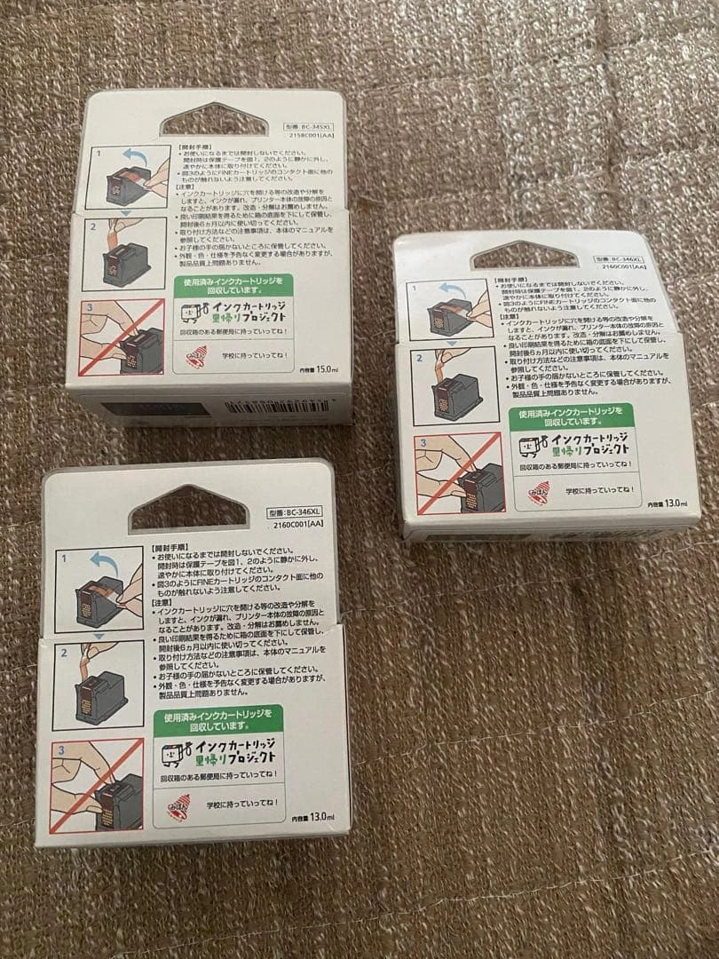 Canon PIXUS 345/346 XL インクカートリッジ 3個セット - モデル: PIXUS 345 (Black) & PIXUS 346 (Color) XL - 数量: 3個セット - 互換性: Canonプリンター用 - パッケージ状態: 未開封 取付期限は過ぎていますが、未開封で暗所にて保管していたため、問題なくお使いいただける場合が多い商品です。 ご理解の上ご購入をお願いいたします。 ご希望の方はお気軽にご連絡ください。