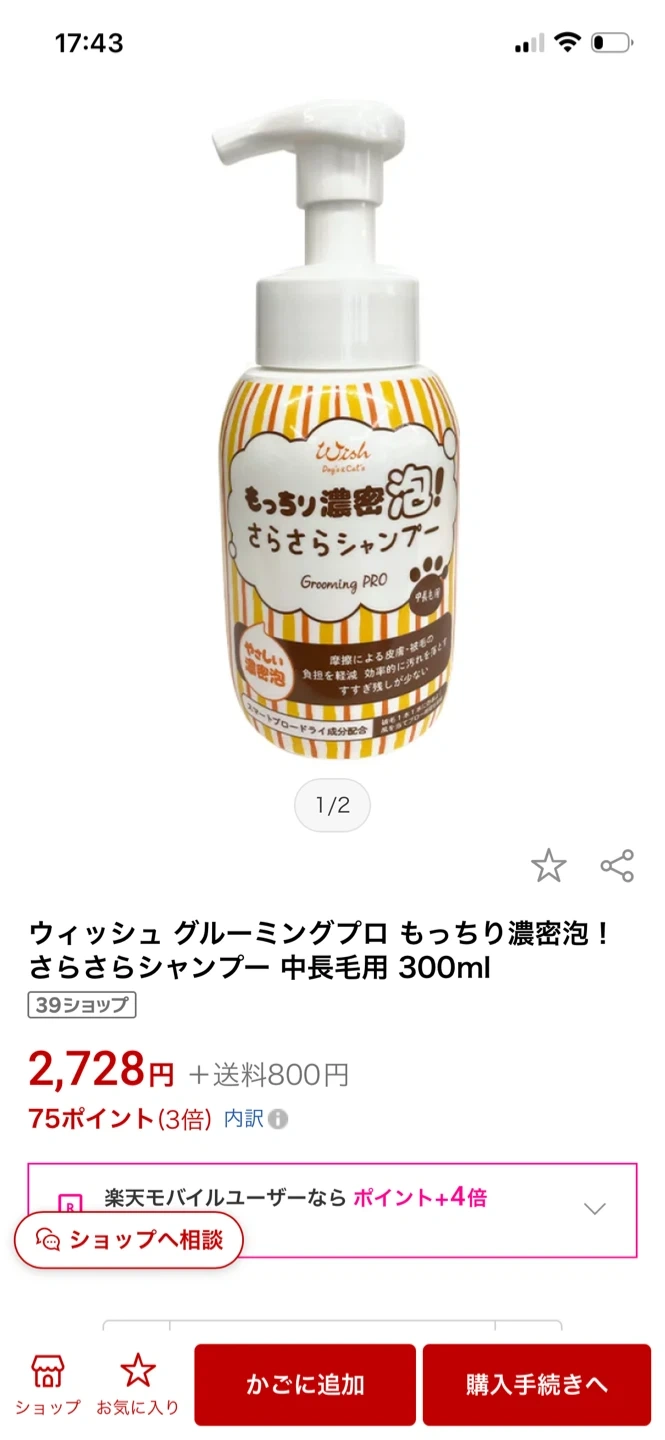 ウィッシュ グルーミングプロのさらさらシャンプーです。 ・ブランド:ウィッシュ (Wish Dog's & Cat's) ・商品名:グルーミングプロ さらさらシャンプー 本体2728円➕詰め替え2420円🟰5148円分です。 新たに猫ちゃんを迎え、必要になるかと思い用意しましたが使う予定がないので出品します。 引き渡しは綾瀬駅より徒歩3分程の小菅四丁目のファミリーマートさんの駐車場でお願いします。 ご不明点があればお気軽にお尋ねください。