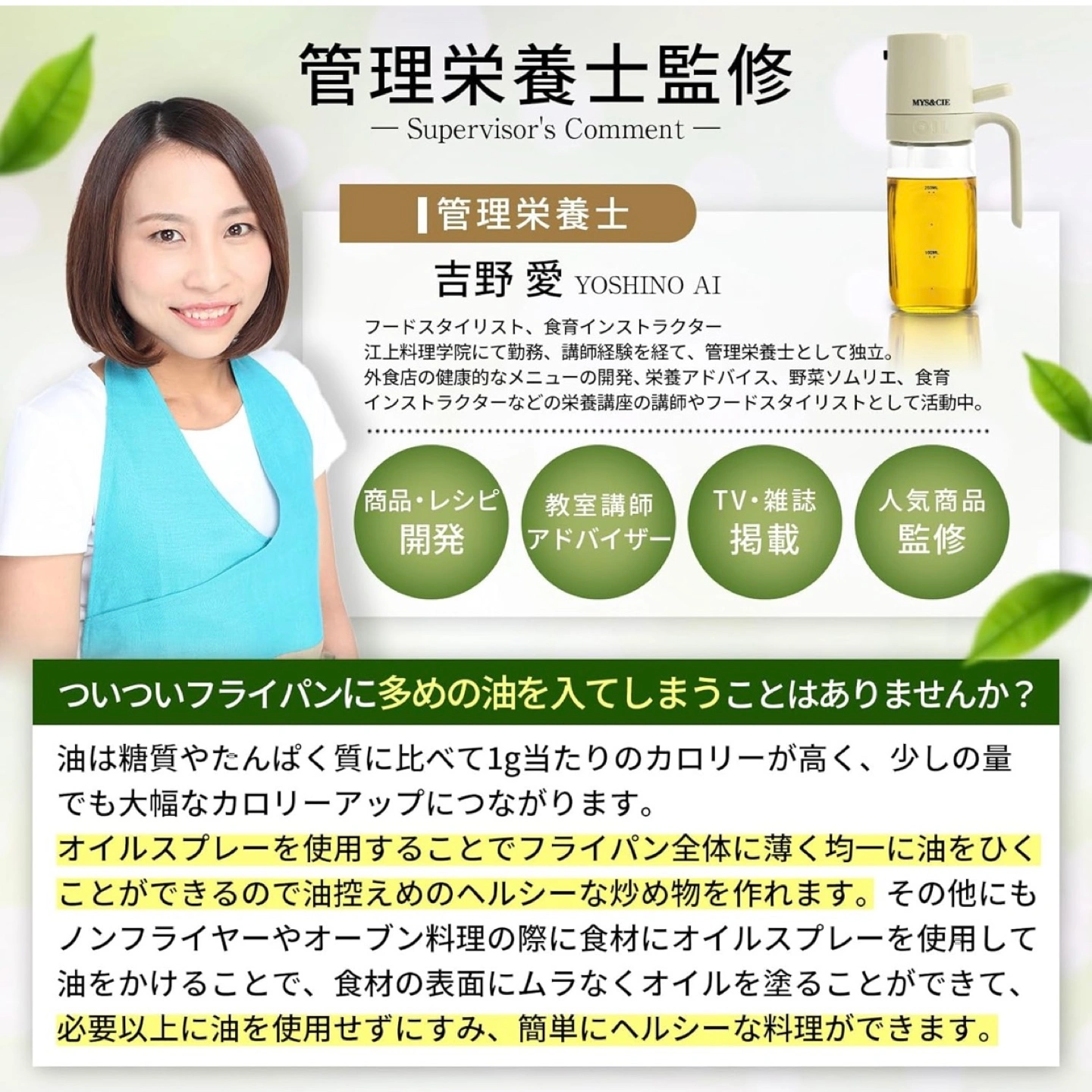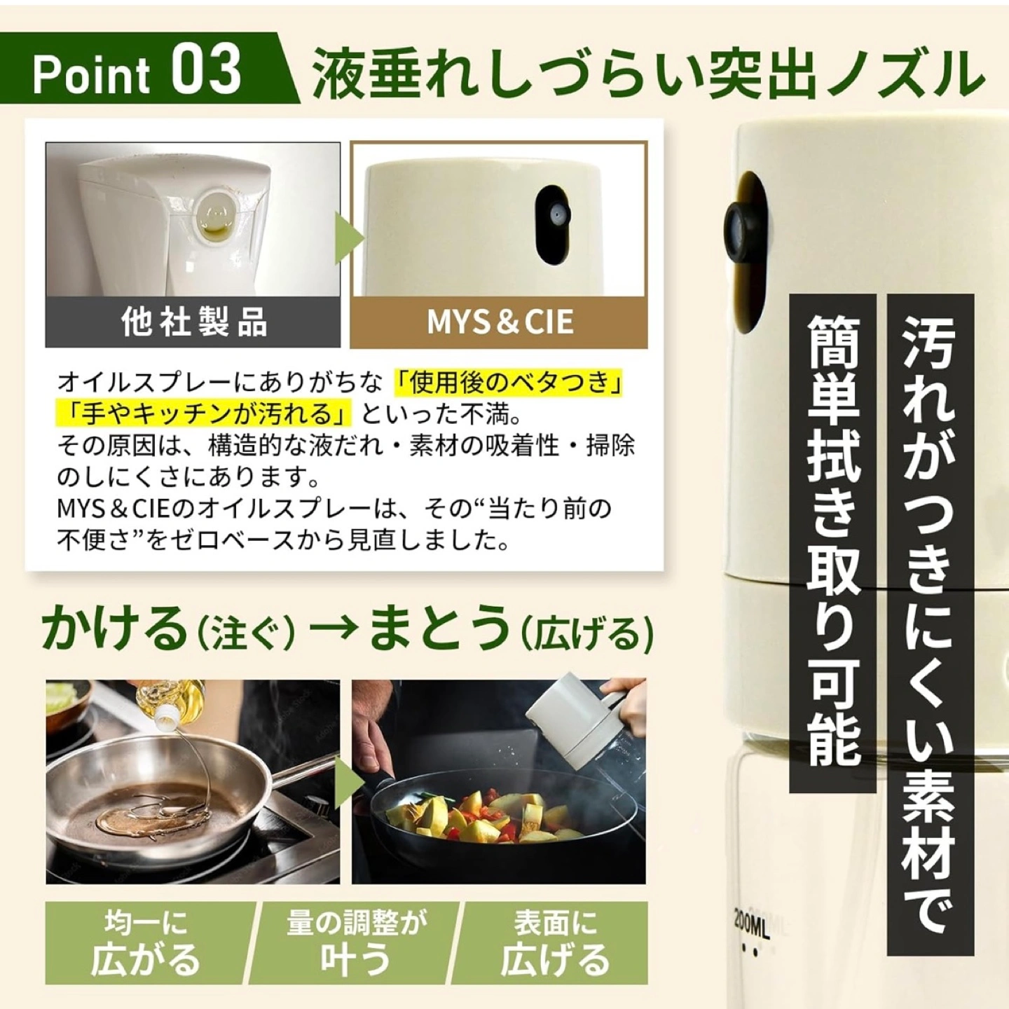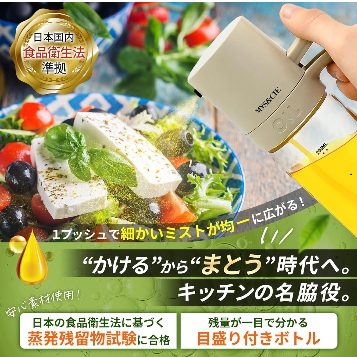 オイルスプレー 250ml 目盛り付き 耐熱ガラス製 新品未使用 ●残量がひと目でわかる、目盛り付き(200mlまで) ●スプレーノズルを長めに設計。ボトルを傾けた状態でもしっかり吸い上げます。 ●液だれしにくいノズル構造。ノズルは突出構造+汚れがつきにくい素材を採用。 ●、大きめ注ぎ口 注ぎ口で、詰め替えラクラク、洗いやすい。 ●片手で使いやすい設計。 ●日本国内の食品衛生法に基づく「蒸発残留物検査」に合格した素材を使用。耐熱ガラス製 ●内容量:250ml ●サイズ:約18.5cm × 9cm × 5.5cm