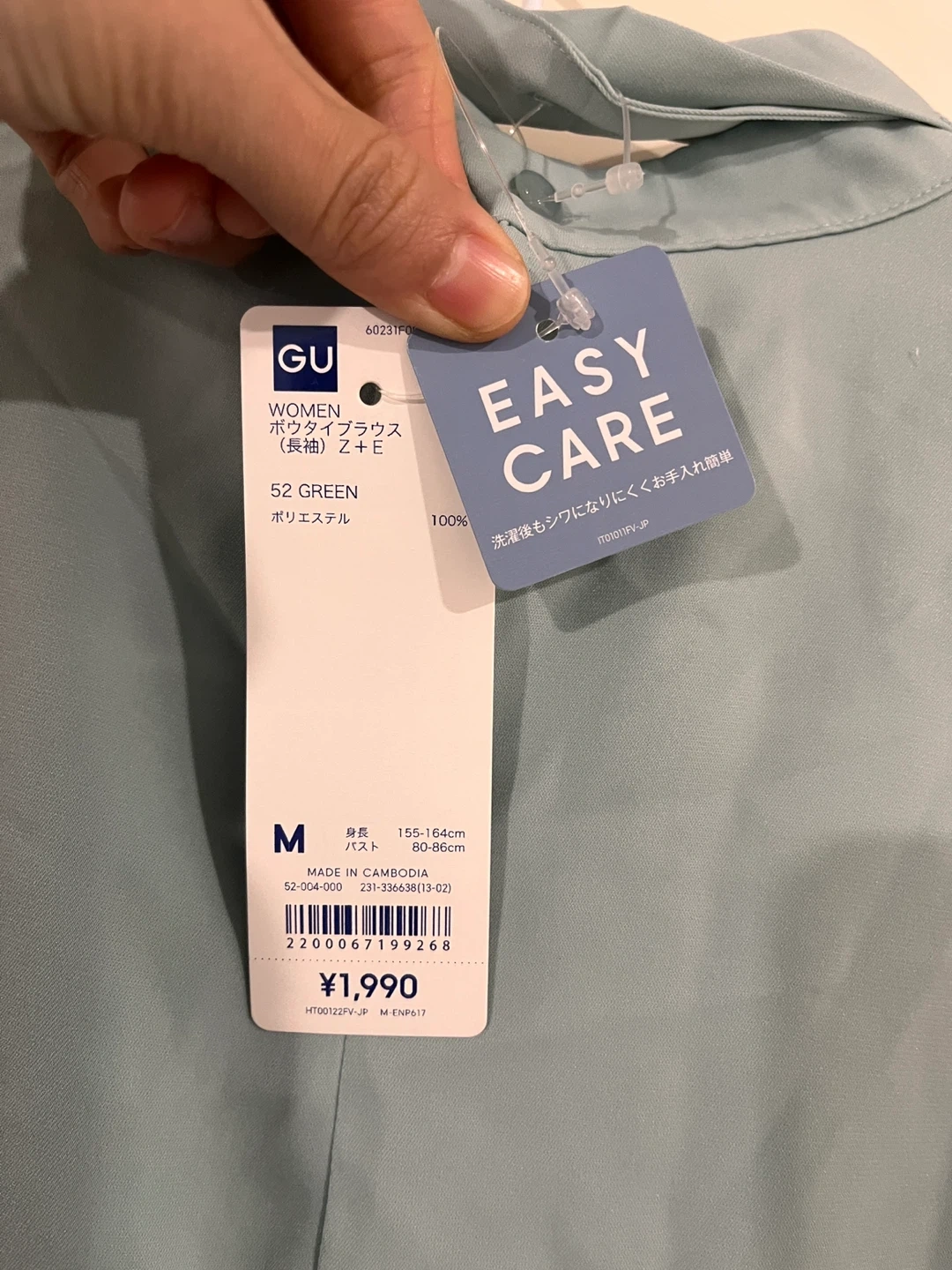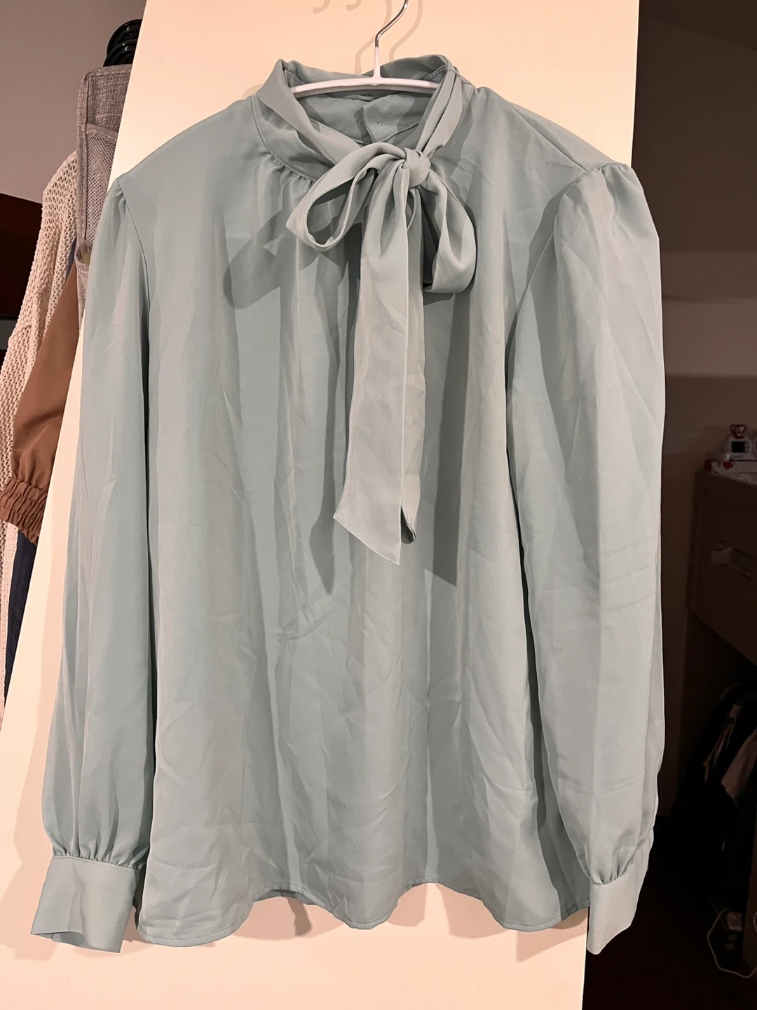 【新品】【タグ付き】GU ミントグリーン リボン付き長袖ブラウス