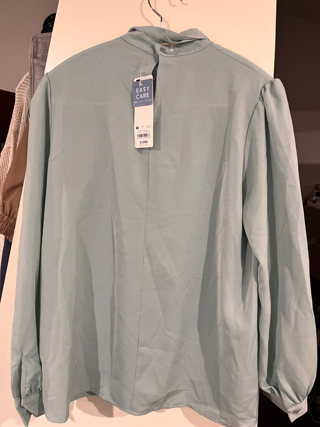 ミントグリーンのリボン付き長袖ブラウス、イージーケア仕様。 新品、タグ付きです。 Mサイズです。 - ブランド: GU - 色: ミントグリーン - デザイン: リボン付き - スタイル: 長袖 - ケア: イージーケア ご覧いただきありがとうございます。