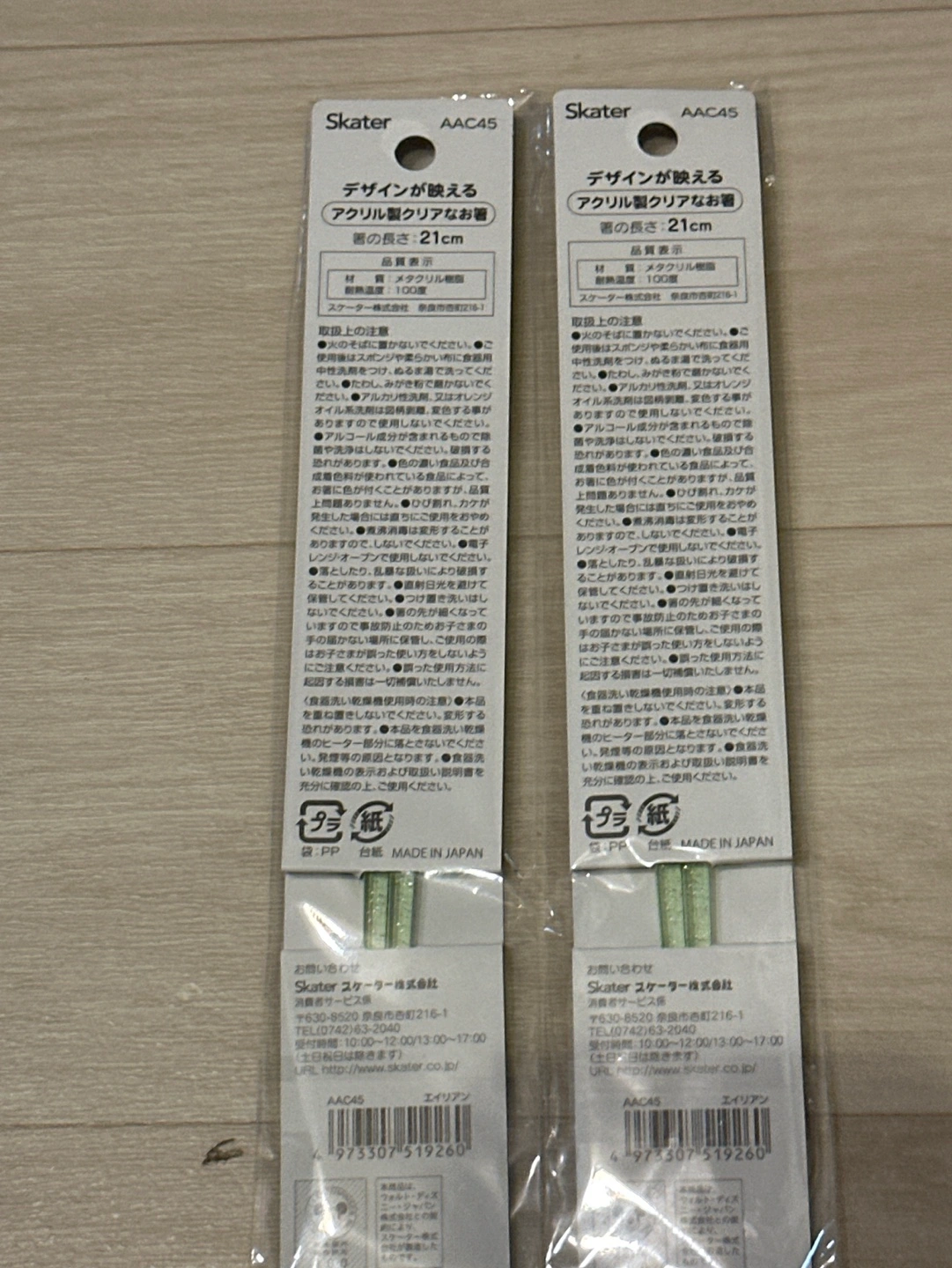 ご覧頂きありがとうございます♪ デザインが映える!アクリル製クリアなお箸! 箸先には食べ物が掴みやすい、すべり止め加工がされています。 四角い形なので箸が転がり落ちにくい! 食洗機OK! 【商品サイズ(約)】 長さ:21cm 【品質表示】 材質:メタクリル樹脂 耐熱温度:100度 ※電子レンジ・オーブンで使用しないでください。 ※アルコール成分が含まれるもので除菌や洗浄はしないでください。破損する恐れがあります。 ※煮沸消毒は変形の恐れがありますので、しないでください。 ●日本製 ※掲載画像はあくまでイメージです。実際の商品とは色、柄等が異なる場合がございます。何卒ご了承ください。