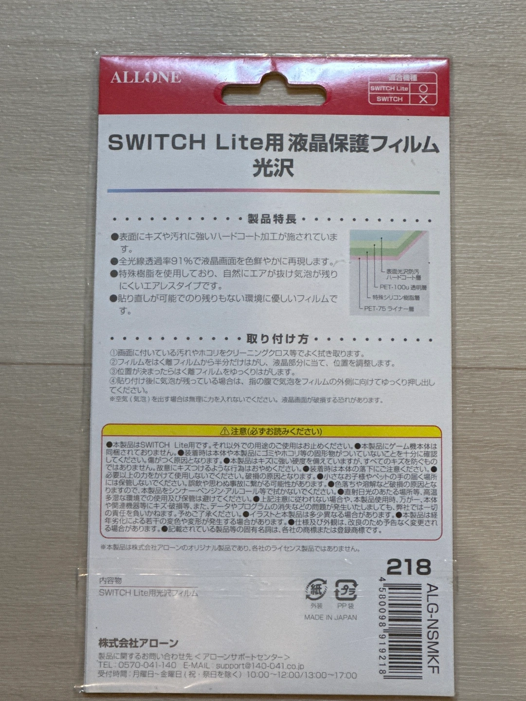 ご覧頂きありがとうございます♪ 「SWITCH Lite用 液晶保護フィルム 光沢」 Nintendo / ALLONE 新品未開封品の商品です。 520円で購入しました。 大人気ゲーム機「SWITCH Lite」の液晶保護フィルム。特殊ハードコートでキズや汚れに強く、指触りも滑らかなのが特徴。 自然に気泡が抜けるエアレスタイプで貼り直しも可能。 ▪️スペック 商品名:SWITCH Lite用液晶保護フィルム光沢 対応ゲーム機:ニンテンドーSWITCH Lite カテゴリー:液晶保護フィルム 販売元:株式会社アローン 特徴:光沢仕様 完璧を求める方はご遠慮ください。 他のサイトにも出品しておりますので早い者勝ちです! 50.00