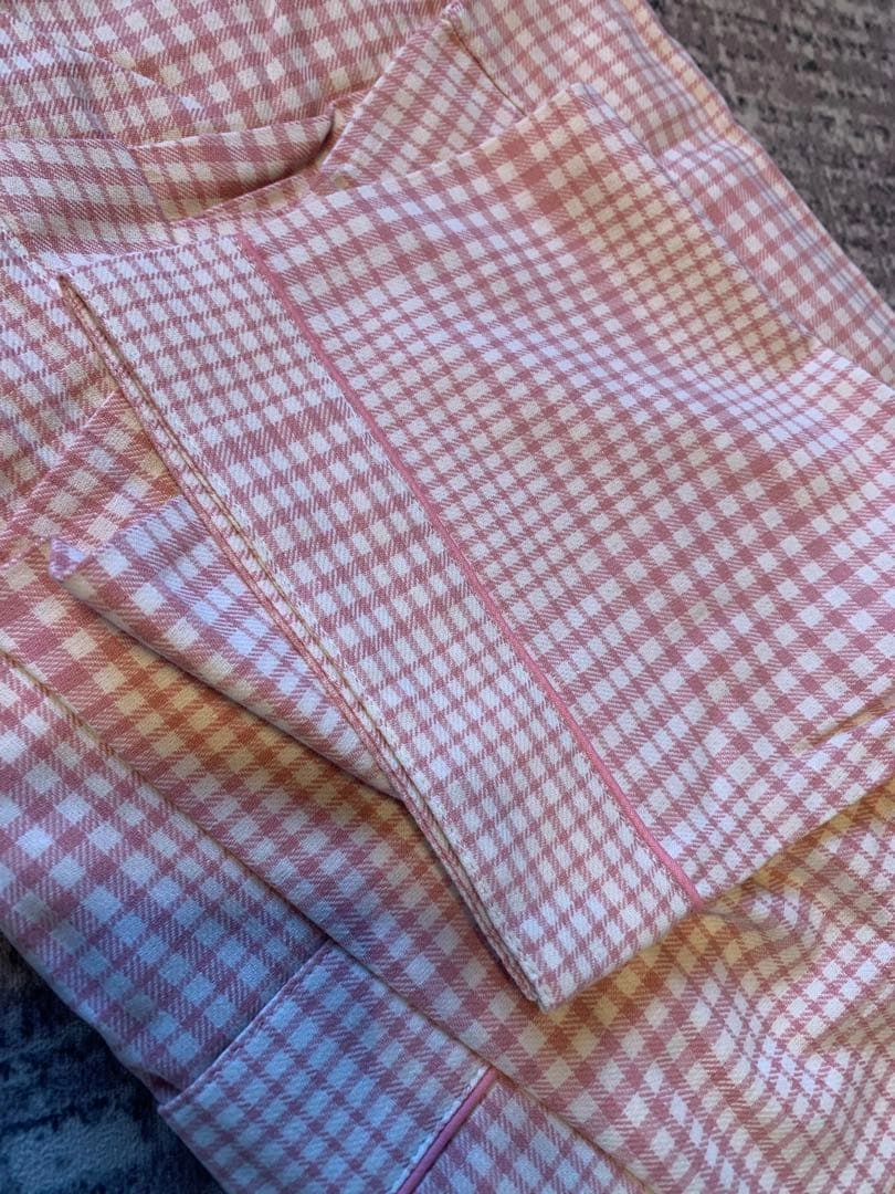 厚手のコットンで、秋冬向きです。 ズボンの前開きはありません。 平置きの状態で、身幅64.5cm、パンツウエスト54cm(ゴム入り)になります。 ご不明点はお気軽にお問い合わせください。
