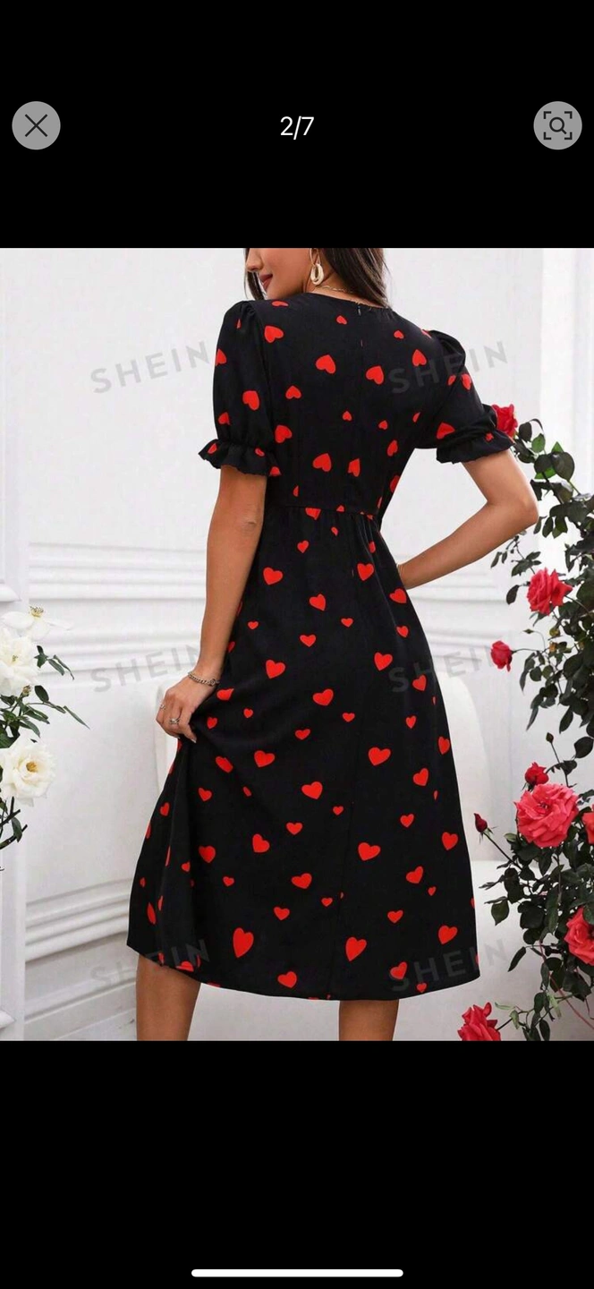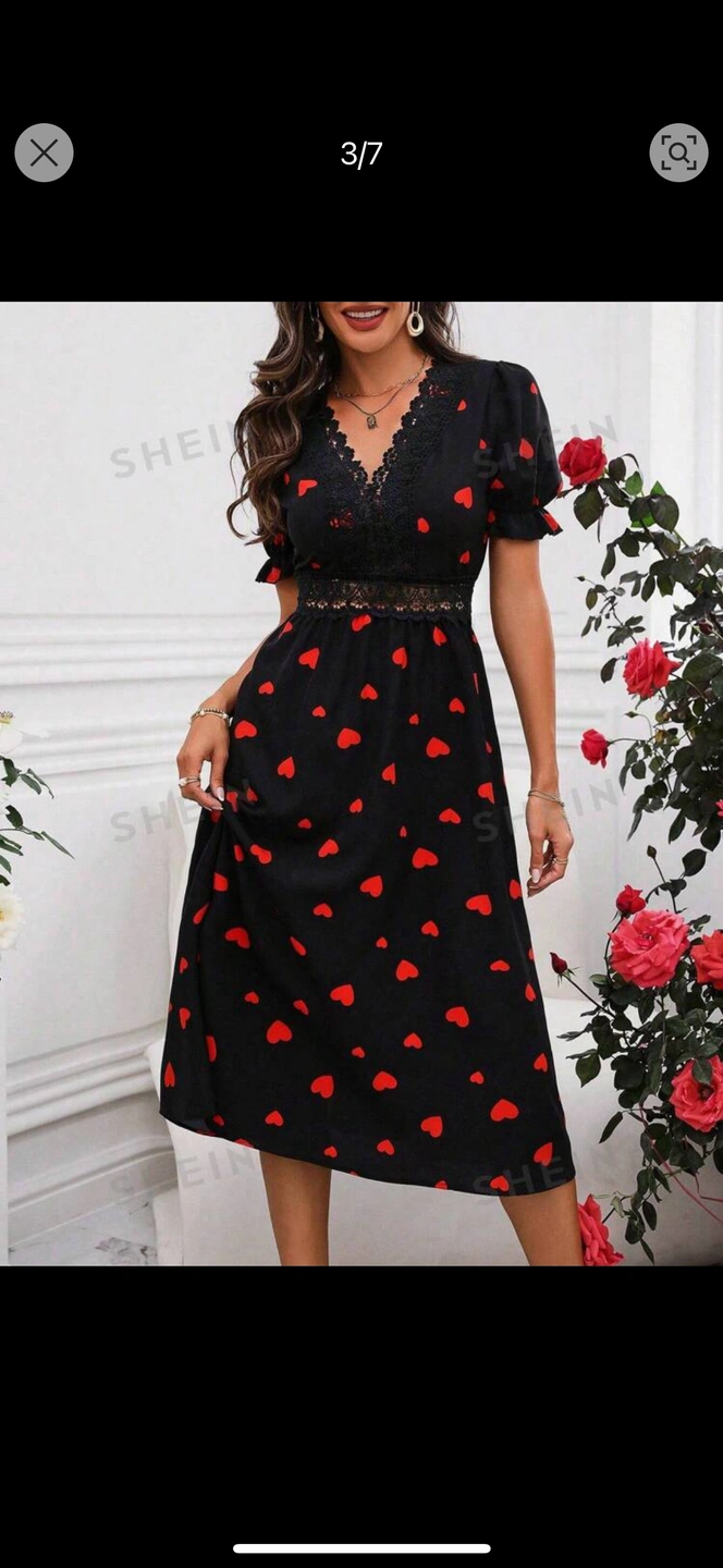 レディースラブプリントレースパッチワークドレス 可愛いドレス👗😍