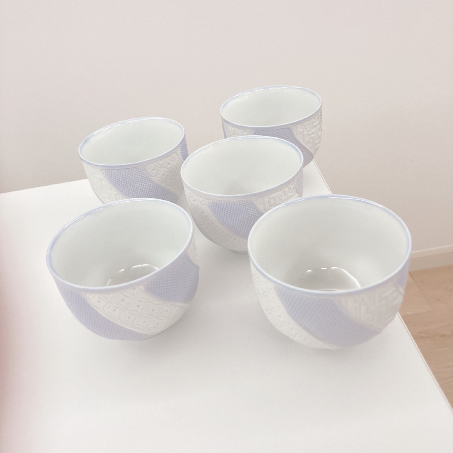 こちら兼山作の湯呑み5客セットです。 珍しい柄で薄い紫部分と白で上品な雰囲気のデザインです。 口径7.5cm、高さ5.5cm 有田焼 購入してから使用せずしまってありました。 写真ご確認の上ご購入お願いします。 質問あ りましたらお気軽にどーぞ! #有田焼 #西陶謹製 #西陶 #兼山作 #兼山 #茶器セット #急須 #湯呑み #湯のみ #未使用 #薄紫