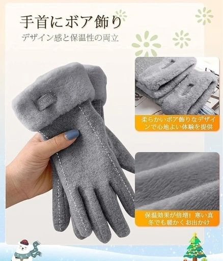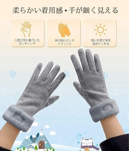 上質な素材を使用した手袋です。とても柔らかな手触りで、手にクリームを塗っているような着け心地とのことです。 スマホも使えて、右手人差し指はタッチパネルに対応しています。ふわふわのファーや猫耳、ボアの飾りがキュートです。 裏地はフリースで暖かく、抗菌・吸汗・放湿加工も施されています。 落ち着いた色からハイエンドのファッションカラーまであり、様々な服装に合わせやすいかと思います。 プレゼントにもおすすめです。ご希望の方はお気軽にご連絡ください。