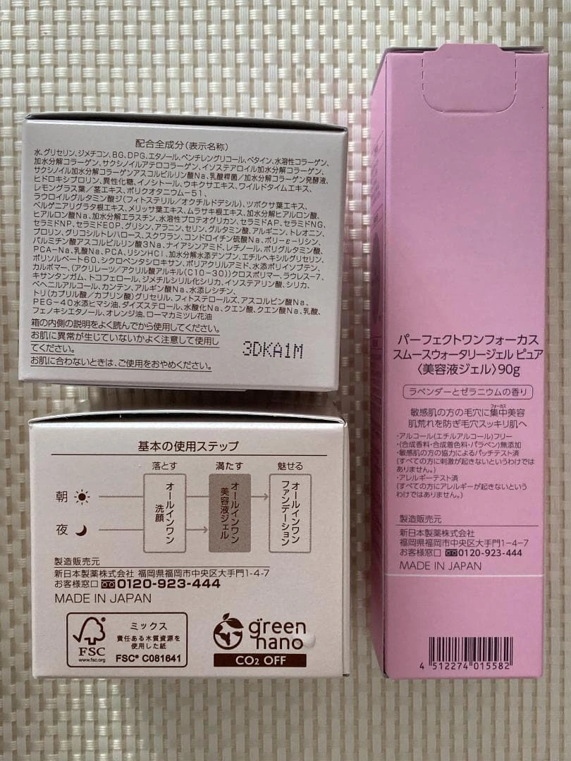 新日本製薬の株主優待品です。 ■新品未開封 新日本製薬 パーフェクトワン トリートメントシャンプー 400ml 2本 定価5280円(税込2640円×2本) 1本で6つの機能。 シャンプー、コンディショナー、トリートメント、ヘアパック、頭皮ケア、速乾 髪と頭皮をエイジングケア※7。なめらかにまとまる髪に。髪と頭皮をやさしく洗い、同時に50種の保湿成分が髪を補修・保護。乾きやすい※1処方で、1本でなめらかな髪に。 ■新品未開封 新日本製薬 パーフェクトワン オールインワン美容液ジェル モイスチャージェル 75g 2個 定価8360円(税込4180円×2本) 【ハリと潤いが欲しい方に】潤いで肌を満たし、もっちりとしたハリ肌へ オリジナル成分「ムラサキ発酵コラーゲン」を世界初配合。 さらに浸透VCコラーゲンを増量することで、角質層のすみずみまで潤いをムラなく巡らせて、ハリのある健やかな肌へと導きます。 内容量 75g (専用スパチュラ付) 1回の使用量目安:直径2cmくらい 無添加:合成香料、合成着色料、パラベン ■新品未開封 新日本製薬 パーフェクトワン スムースウォータリージェル ピュア 敏感肌用 センシティブ 90g 1個 定価2970円 肌荒れを防ぎながら毛穴ケアピュアウォータリージェル 肌荒れを防ぎながら、毛穴ケアできるウォータリージェル。 低刺激処方で敏感肌の方もお使いいただけます。 スクワランやヒアルロン酸をはじめとした38種の保湿成分や世界中から厳選した毛穴ケアに有効な植物成分を配合。 肌のバリア機能を整えながら毛穴ケア。 化粧水、乳液、クリーム、美容液、パック、化粧下地の1品6役のオールインワンジェル。