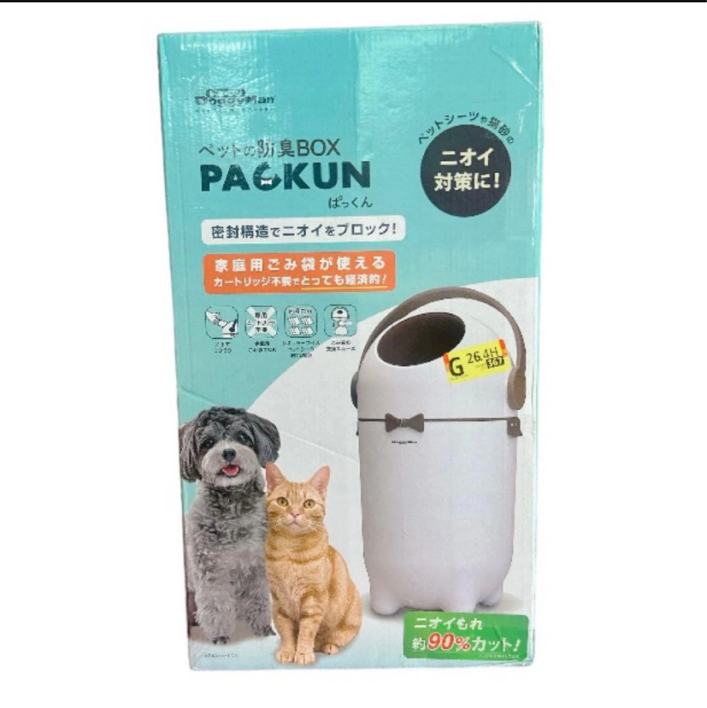 新品未使用 専用箱入り ペット用ゴミ箱です 【情報】 ブランド:ドギーマン 商品名:ペットの防臭BOX PAC-KUN (パックン) 【サイズ】 高さ:約48cm 奥行:約24cm 幅:約24cm 開口部直径:約13cm 【素材】 ABS樹脂、ポリプロピレン 【その他】 推奨ゴミ袋:20〜30L レギュラーサイズペットシーツ約12枚分 小型犬用おむつ約15枚分 中古品であることご了承ください
