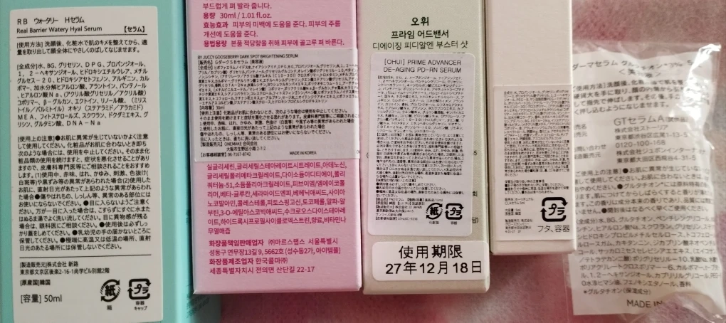 全て新品未開封。 全セットは1200円です。 バラ売りの場合は 上段2点は各500円、 下段は3点セットで500円です。 ご希望の番号をコメントください。 1、REAL BARRIER WATERY HYAL SERUM 50ml 2、by juccy Gooseberry Dark Spot Brightening Serum 30ml 3、 ・HOLITUAL Core Lift Activating Serum 5ml ・OHUI PRIME ADVANCER De-aging PDRN Booster Shot 10ml ・ダーマセラムグルタチオン5ml 同時出品物との同時購入歓迎です! (切手、雑貨、衣類など) 受け渡しは溝の口駅、高津駅、津田山駅周辺にて。 自宅近くのコンビニまで来ていただける場合は夜間の受け渡しも可能です。