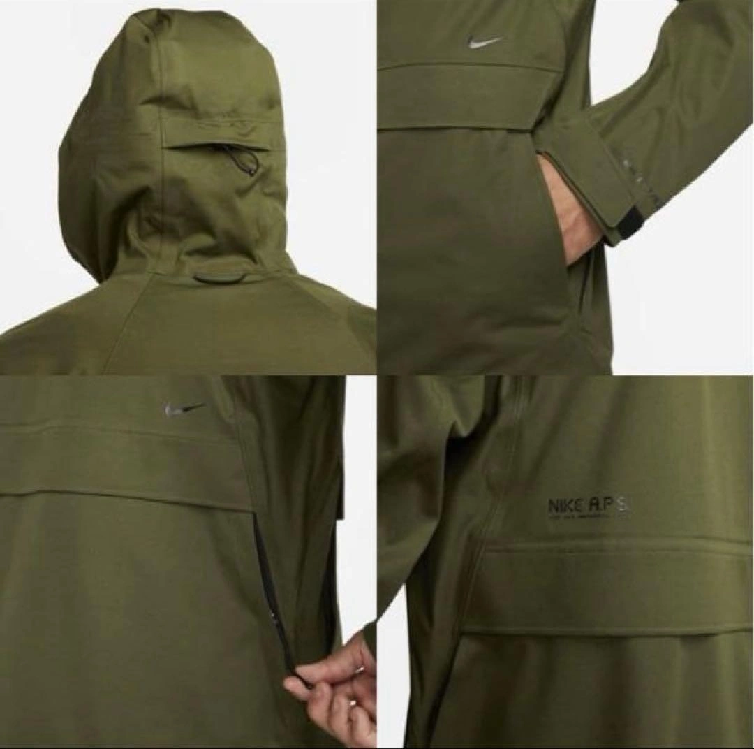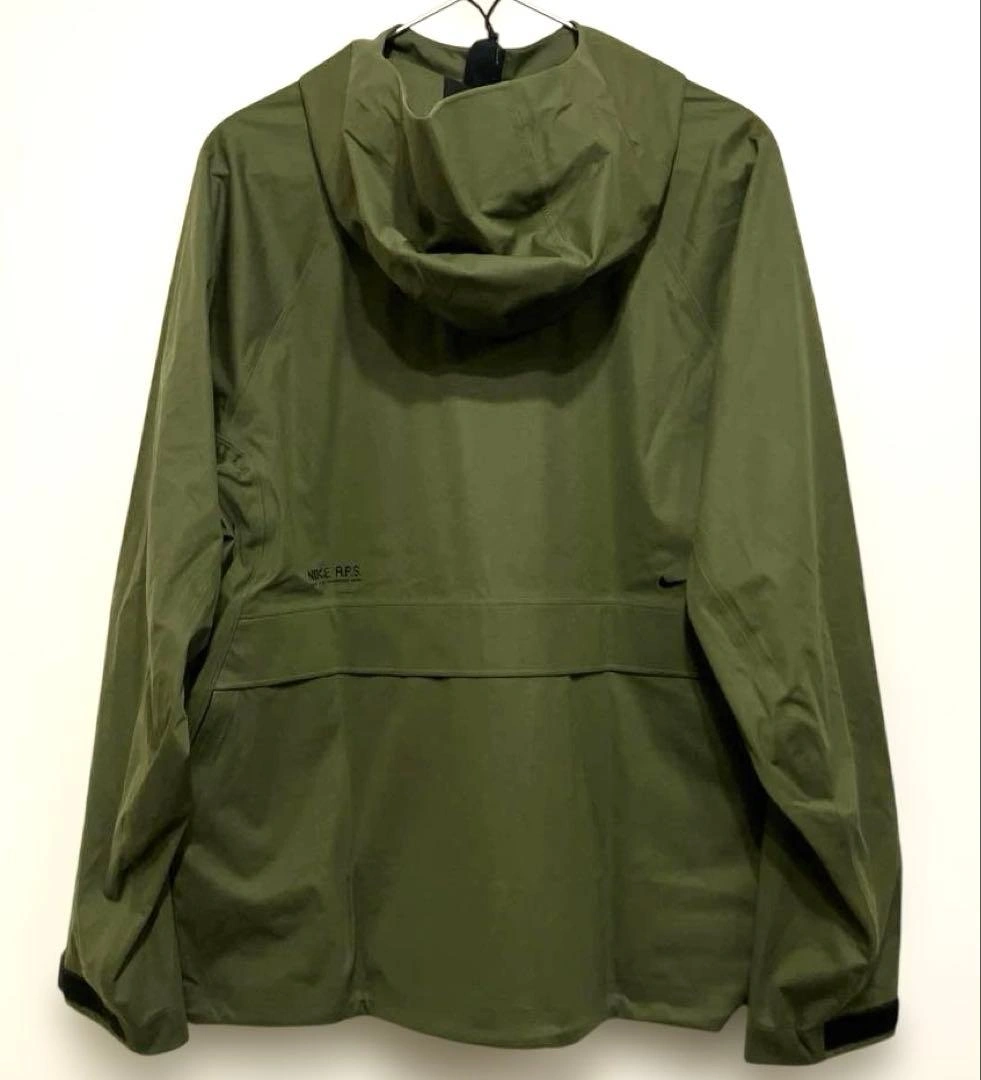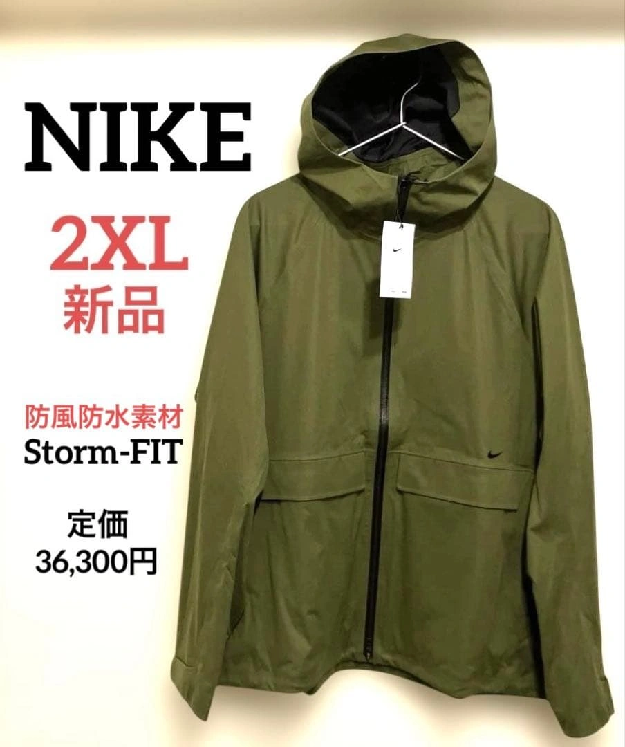 Storm-FIT ADV A.P.S. JACKET 2XL 新品 タグ付き 定価税込36,300円 NIKEの高級なシリーズです。なかなかないサイズ&とにかく、機能的です。 ◯商品紹介 アクシス パフォーマンス システム ジャケットで、嵐の日のワークアウトを乗り切ろう。 フリースやアンダーレイヤーの上に重ね着して、悪天候をシャットアウト。 フードや背面の裾などを調節できる軽量デザインで、どんな天候でもすぐにトレーニングに取り組めます。 ・質感 しっかりとした肉厚のウーブン素材。 雨風に強く、全体にマットなSTORM(撥水)コーティングがほどこされた高級感のある仕上がり。 ・悪天候に対応 防風防水素材に最先端の技術と機能を組み合わせたNike Storm-FIT ADVテクノロジーを搭載。過酷な天候でも快適な状態をキープします。厚手のニット素材を使用した丈夫なデザインで、雨天でも快適。 ・必需品を便利に収納 サイドポケットやドロップインポケットなど、必需品を安全に収納できるポケットをたくさん備えたデザイン。 体の動きを妨げないように胸に、2つのジッパー付きポケットを追加。 ◯特長 ・面ファスナー付きの背面フラップを開いて、裾のカバー範囲を拡大。 ・フルレングスのジッパー。 ・リフレクティブ (再帰反射) 素材を使用。 ◯カラー ラフグリーン(カーキ) ◯サイズ cm 身長176-185 胸囲109-115 ◯素材 ポリエステル100% ◯その他 タグは半分カットさせていただいております。 ご希望の方はお気軽にご連絡ください。