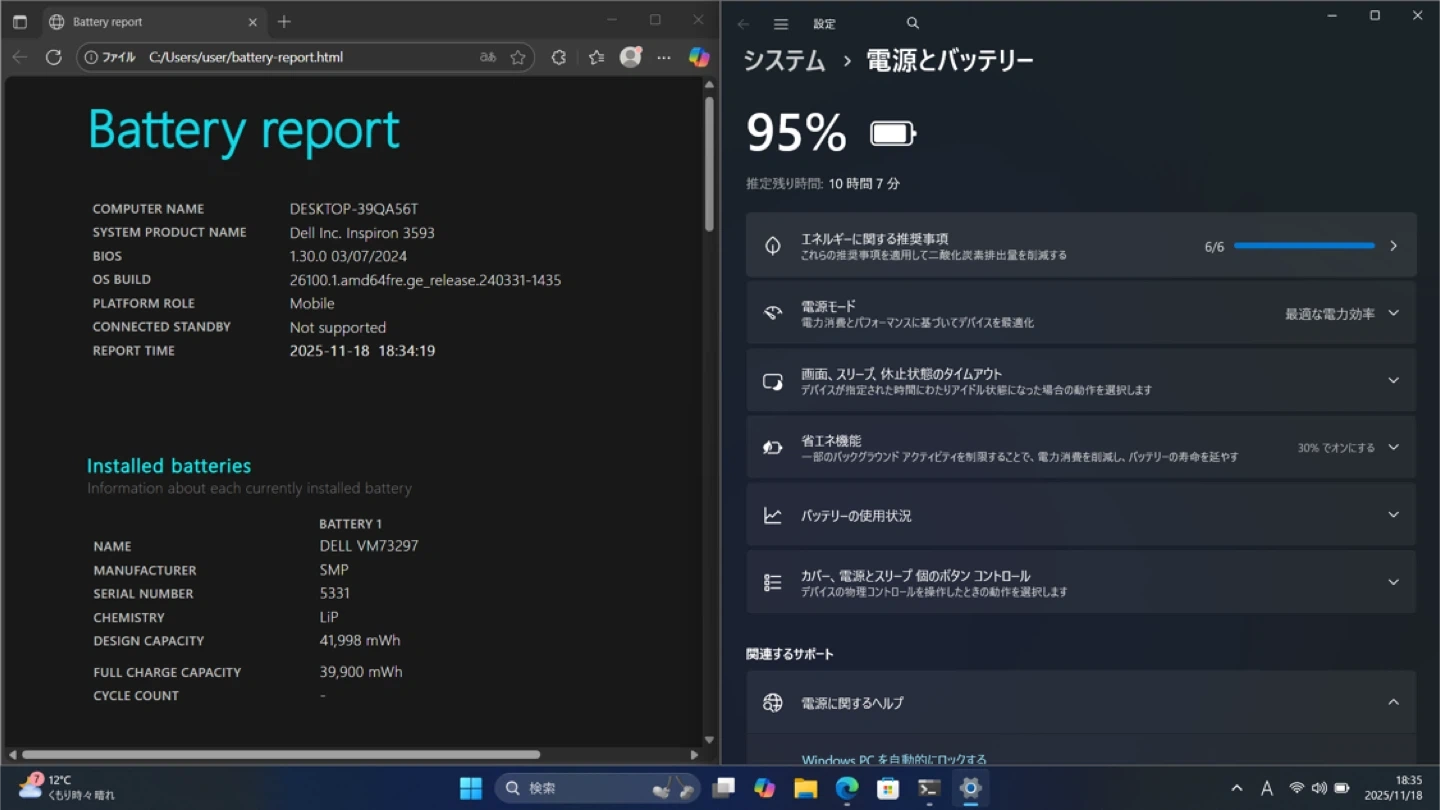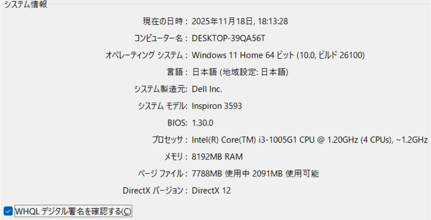 Dell Inspiron 3593(第10世代)/ほぼ未使用・新品同様 ご覧いただきありがとうございます。 こちらは 使用回数が非常に少なく、状態の良い Dell Inspiron 3593(第10世代) です。 動作も高速で、学習・在宅作業・事務作業に最適なノートパソコンです。 ⸻ ■ 主なスペック •モデル:Dell Inspiron 3593 •CPU:Intel Core i3-1005G1(第10世代) •メモリ:8GB(DDR4) •ストレージ:256GB SSD(NVMe) → NVMe SSD は SATA や HDD より大幅に高速で、起動・読み込み・アプリ動作がとてもスムーズです •ディスプレイ:15.6型 •OS:Windows 11 •Office:Microsoft Office Professional Plus 2021 認証済み •重量:約2.02kg •ポート:USB-A ×2、USB-C ×1、フルサイズSDカードスロット ⸻ ■ 状態・使用履歴 •電源投入回数:32回 •総使用時間:132時間(使用頻度かなり少なめ) •バッテリー健全度:約98% •外観:目立つ傷なし。細かなスレ・汚れがある場合がありますが、全体的に非常に良好です。 ⸻ ■ おすすめポイント •自宅作業・学習・事務用途に最適 •Office 2021搭載で購入後すぐに使用可能 •大画面で作業しやすく、Web、動画、資料作成にも便利 ⸻ ■ 注意事項 •Office ライセンスは認証済み。 •中古品のため、写真に写らない細かな傷があることがあります •バッテリー持続時間は使用環境により異なります •値下げ交渉は不可となります ⸻ ■ 発送・その他 •初期設定はすでに完了しており、Chrome・VLC Player・LINE など、日常的によく使われるアプリも事前にインストール済みです。 電源を入れるだけで、すぐにご使用いただけます。 •土日発送対応 •追加写真はお気軽にお知らせください ⸻ ■全体的に非常にきれいな状態のノートパソコンです(画像をご参照ください)。 中古品のため、見落としがある場合は現物優先でお願いいたします。