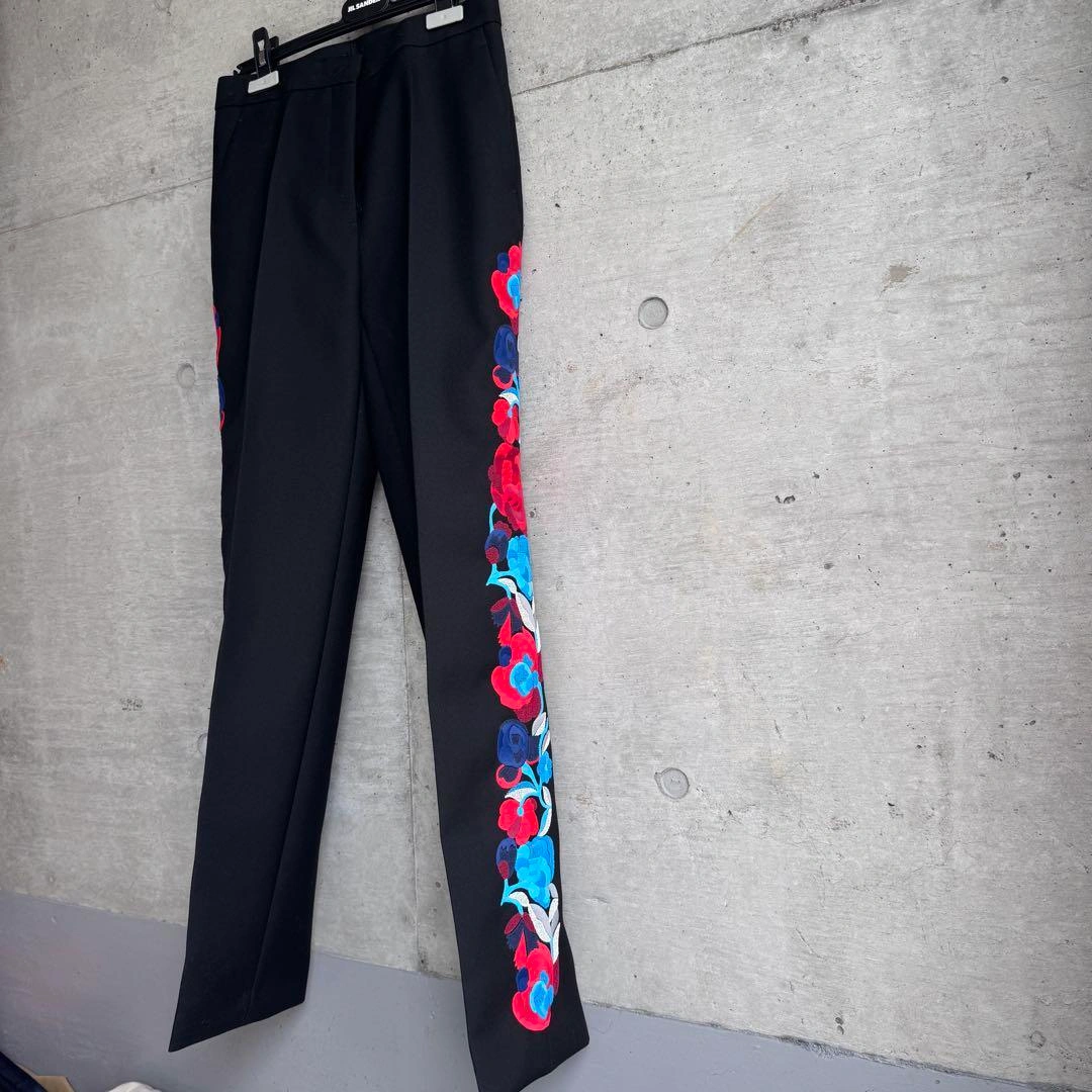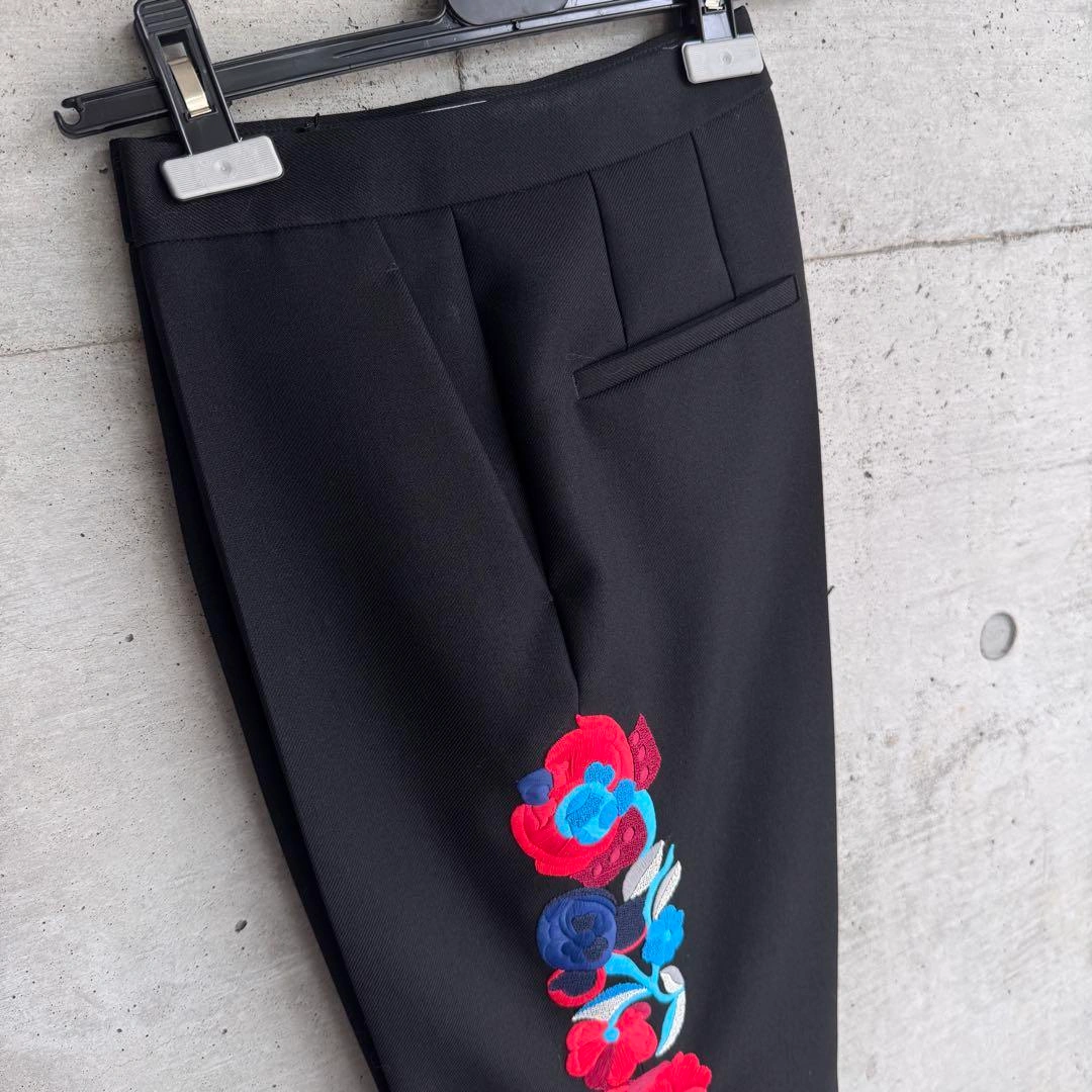 アバハウス ダークグレー系チェック柄ストレートパンツ
