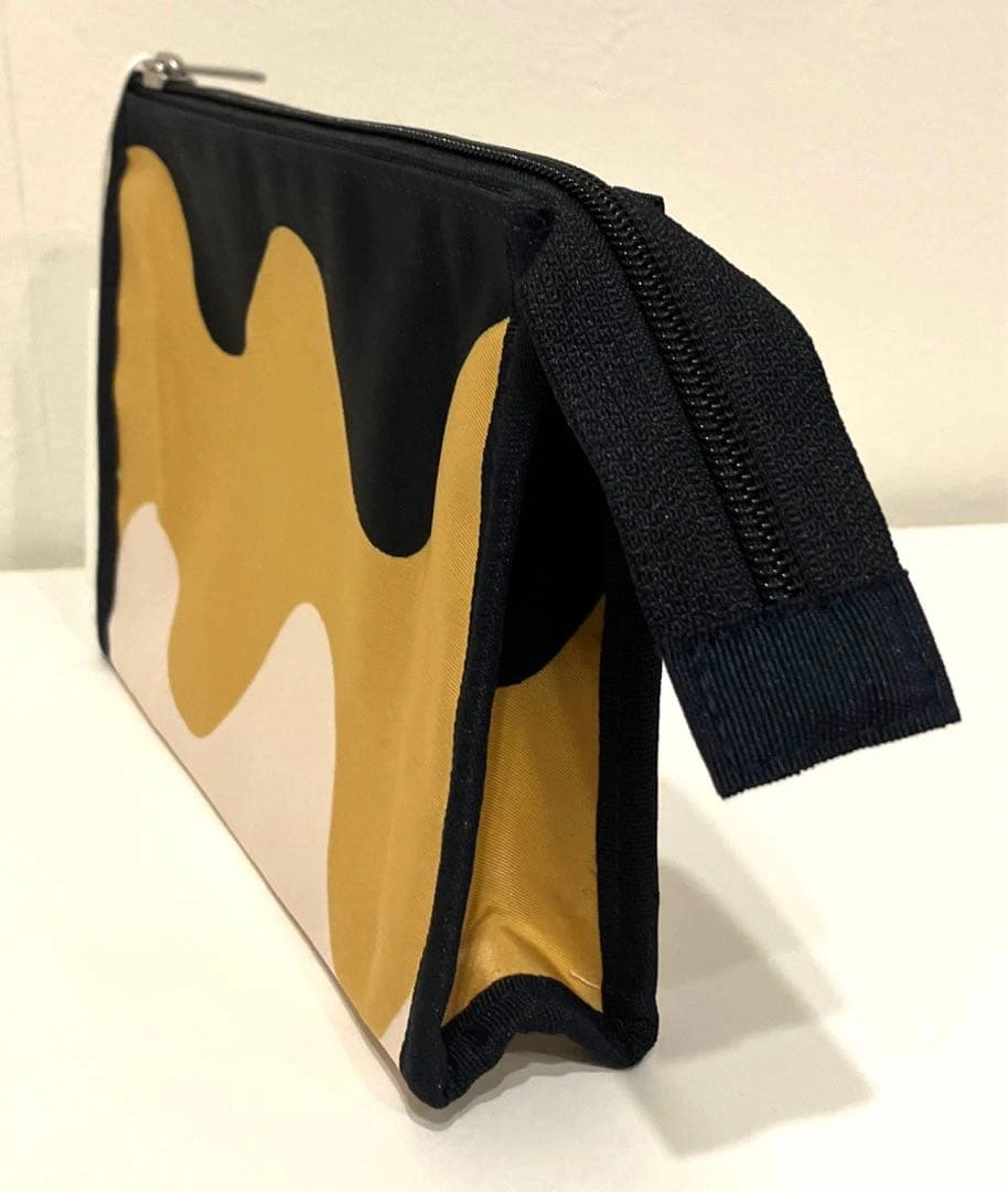 marimekko ポーチ 新品 タグ付き 税込7700円 マリメッコの可愛いミニポーチです♡ ゴールド・ブラック・ホワイト(クリーム)の三色で、マチ付きのためわりと容量があります。 ◯商品説明 デザイナー Maija Isolaが窓にかかるカーテンを眺めていた時に生まれた作品。 窓からキラキラと輝く日差しが入り、緩やかに折り重なるカーテン地に波形の影が現れた時、「生地に波模様を描いたら、例え小さくカットしても立体感のあって素敵なテキスタイルになるに違いない」とひらめき、「Lokki(カモメ)」を描きました。 ◯素材 ナイロン ◯サイズ ※オフィシャルサイトのサイズ表引用 縦:13.5cm 横:19cm マチ:4cm ご希望の方はお気軽にご連絡ください。 marimekko 黒 白 ゴールド ロッキ柄 小型 ヴァニティ バッグ ブラック系 未使用 Hipaus Pikku Lokkiポーチ ご希望の方はお気軽にご連絡ください。