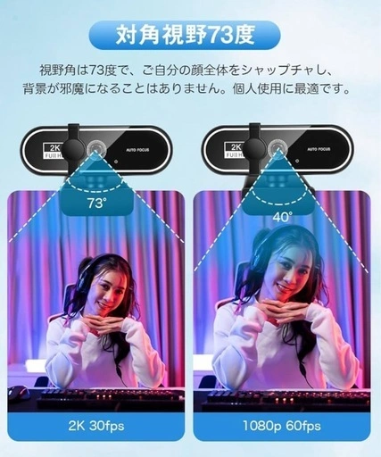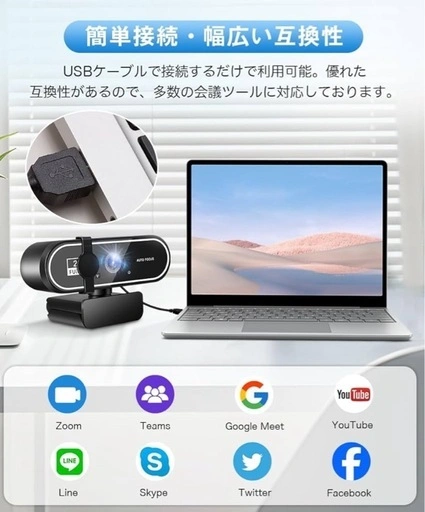 【2K高解像度・超広角レンズ】400万画素の2Kウェブカメラは、高い解像度と鮮やかな色を実現します。細部まで鮮明に見えるため、臨場感あふれる映像体験が可能になります。また、フレームレート30fpsで身振りも滑らかに捉え、オンライン会議で自然な映像を届けることができます。リモートワーク、ハイブリッドワークに最適なウェブカメラです。 【HD光補正・フォーカスレンズ】自動光補正機能を搭載するウェブカメラ は、環境にあわせて自動的に光量バランスやホワイトバランスを調節し、照明条件に影響されることなく明るくきれいな映像を提供します。レンズがピンとを自動で合わせてくれるので、カメラや被写体の位置を調整する必要があリません。 【デュアルマイク内蔵】周囲の雑音を軽減できるノイズリダクション機能を搭載しており、生活音や周囲の騷音を取り除去ます。自分の声だけをしっかり相手に届けることができます。左右2箇所のマイクが、臨場感のあるステレオ音源を集音します。通信相手への均一でクリアな音声送信を実現しました。 【角度調整・マルチスタンド】クリップ付きなので、パソコンの上に置くか、ラップトップまたはモニターの上に置くことができます。パソコンカメラ本体は自由に上下角度を調整可能です。カメラの角度を上下方向に調整することがで去ます。複雑な初期設定必要がなく、USBでPCやラップトップを接続すると、瞬時にweb会議を行えます。 【幅広い互換性】USBケーブルで接続するだけで利用可能。優れた互換性があるので、Windows XP/2000/2003/Vista/7/8/10/11 、Mac OS、Zoom、Teams、Youtubeなどに対応可能です。