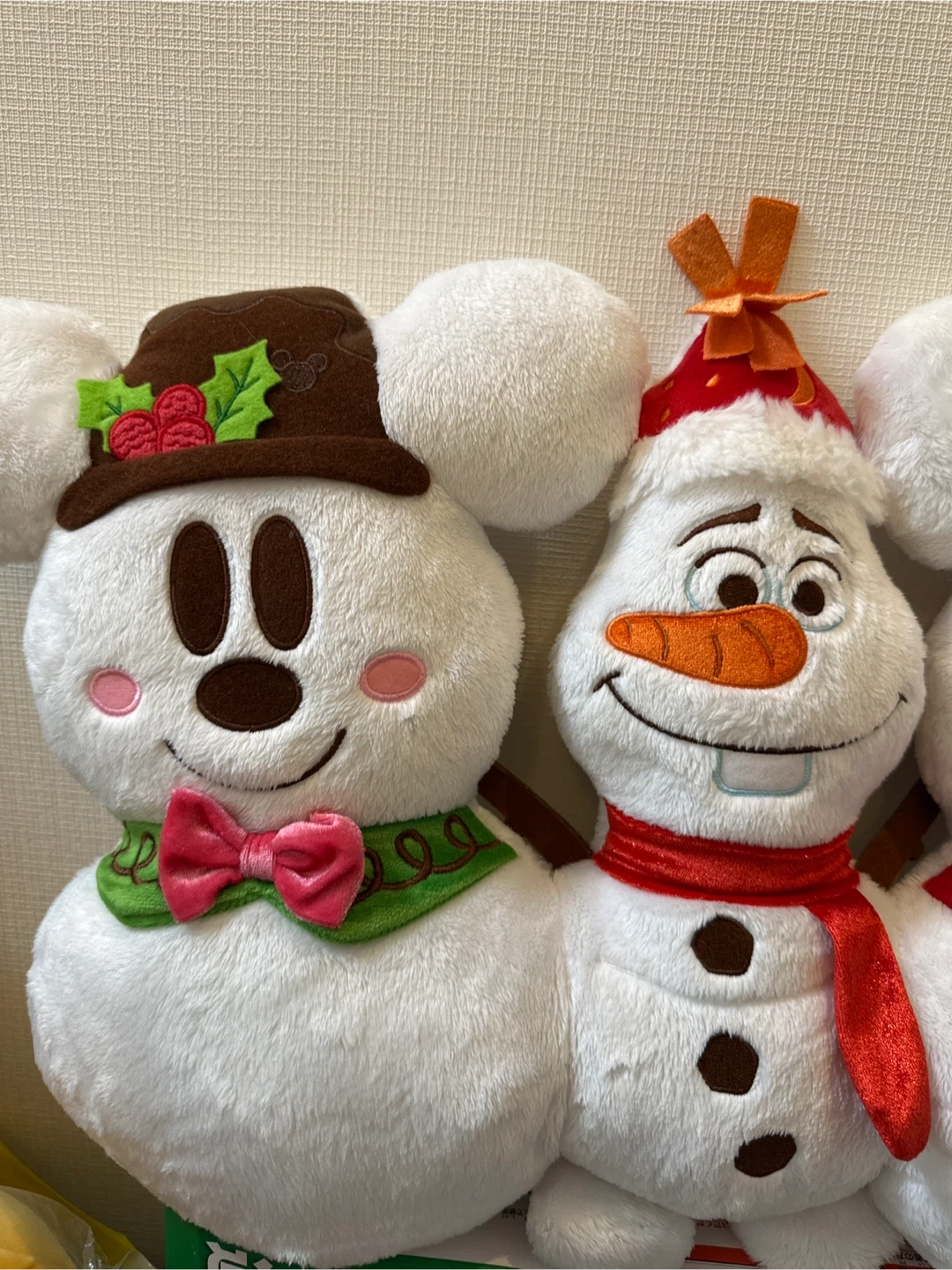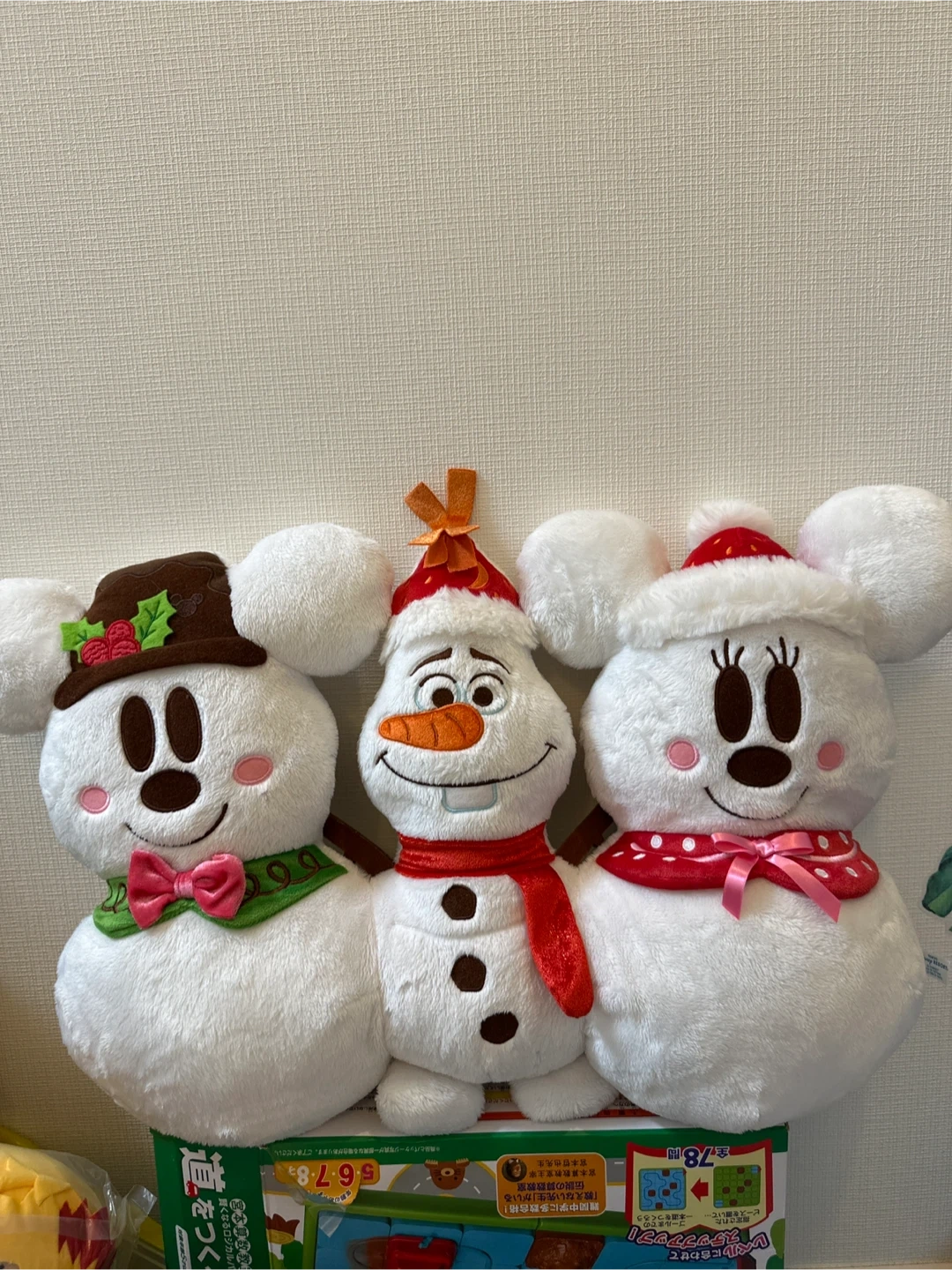 ご覧頂きありがとうございます♪ 2015年の製品です。 冬のテーマのミッキー、ミニー、オラフのぬいぐるみクッションセット。 - キャラクター: ミッキー、オラフ、ミニー - 素材: ぬいぐるみ素材 - デザイン: 冬のテーマ、雪だるまスタイル - サイズ: 約30cm - 色: ホワイト、ピンク、ブラウン