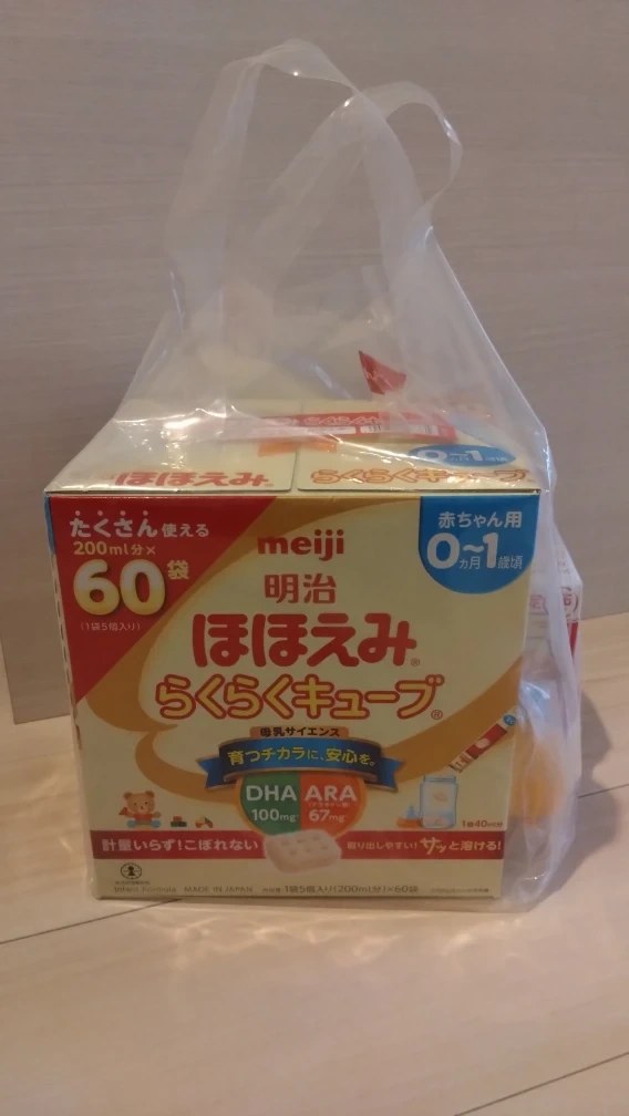 ◎明治 ほほえみ らくらくキューブ 粉ミルク 200ml分×60袋 【状態】 未開封・未使用品 【賞味期限】 2026.04 +おまけ付属品 ◎らくらく液体ミルク缶 ◎ミルク缶用アタッチメント 災害用として多めに購入し保管していましたが、離乳食も始まり飲みきれないと思い出品致します。 未開封ですのでご安心ください。 期限が4月ですのでご了承いただける方に購入いただければと思います!