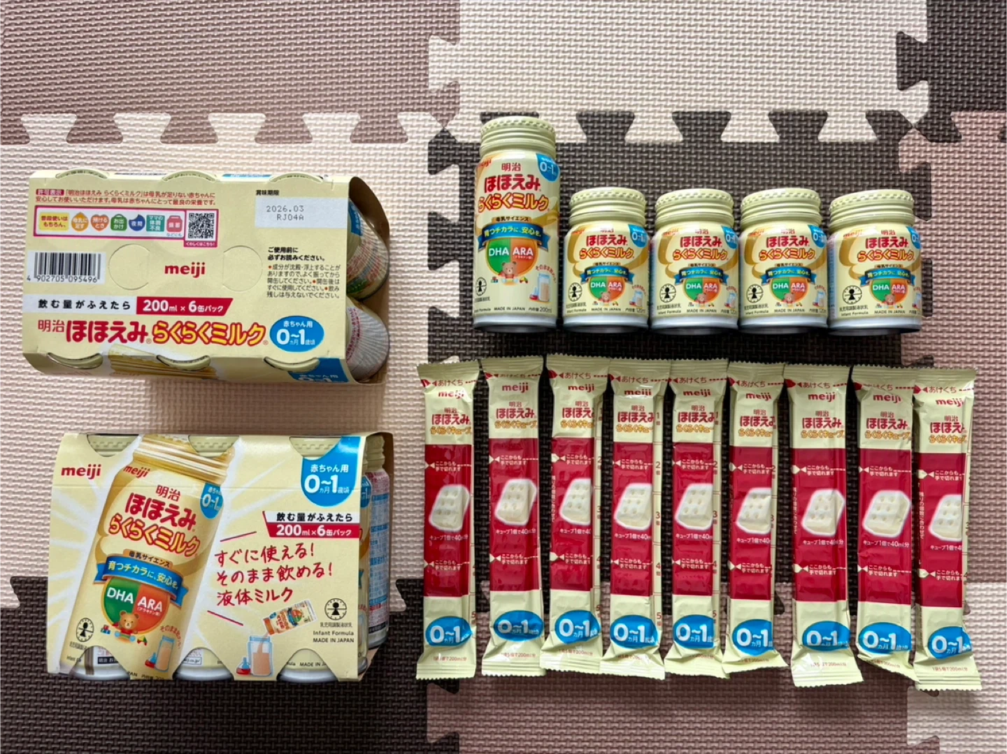 明治 ほほえみ らくらくミルクの液 体ミルクと粉ミルク(キューブ)のセットです。 子どもが哺乳瓶拒否になり全く飲まなくなってしまったので、お引き取りいただける方を探しています。 ▶ 明治 ほほえみ らくらくミルク(液体ミルク) ・200ml 6本入りパック ×2 (賞味期限:2026.03) ・120ml 4本 (賞味期限 2026.02) ・200ml 1本 (賞味期限:2026.05) ▶ 明治 ほほえみ らくらくミルク ・スティックタイプ 10本 (賞味期限 2026.09) バラ売りも可能ですが、まとめてお引き取りくださる方を優先させていただきます。
