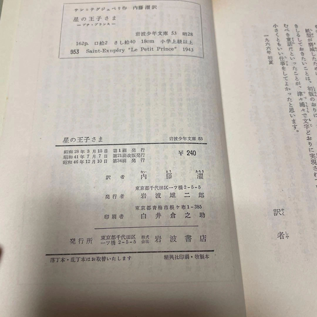 星の王子さま サンテグジュペリ作 内藤濯訳 岩波少年文庫 53