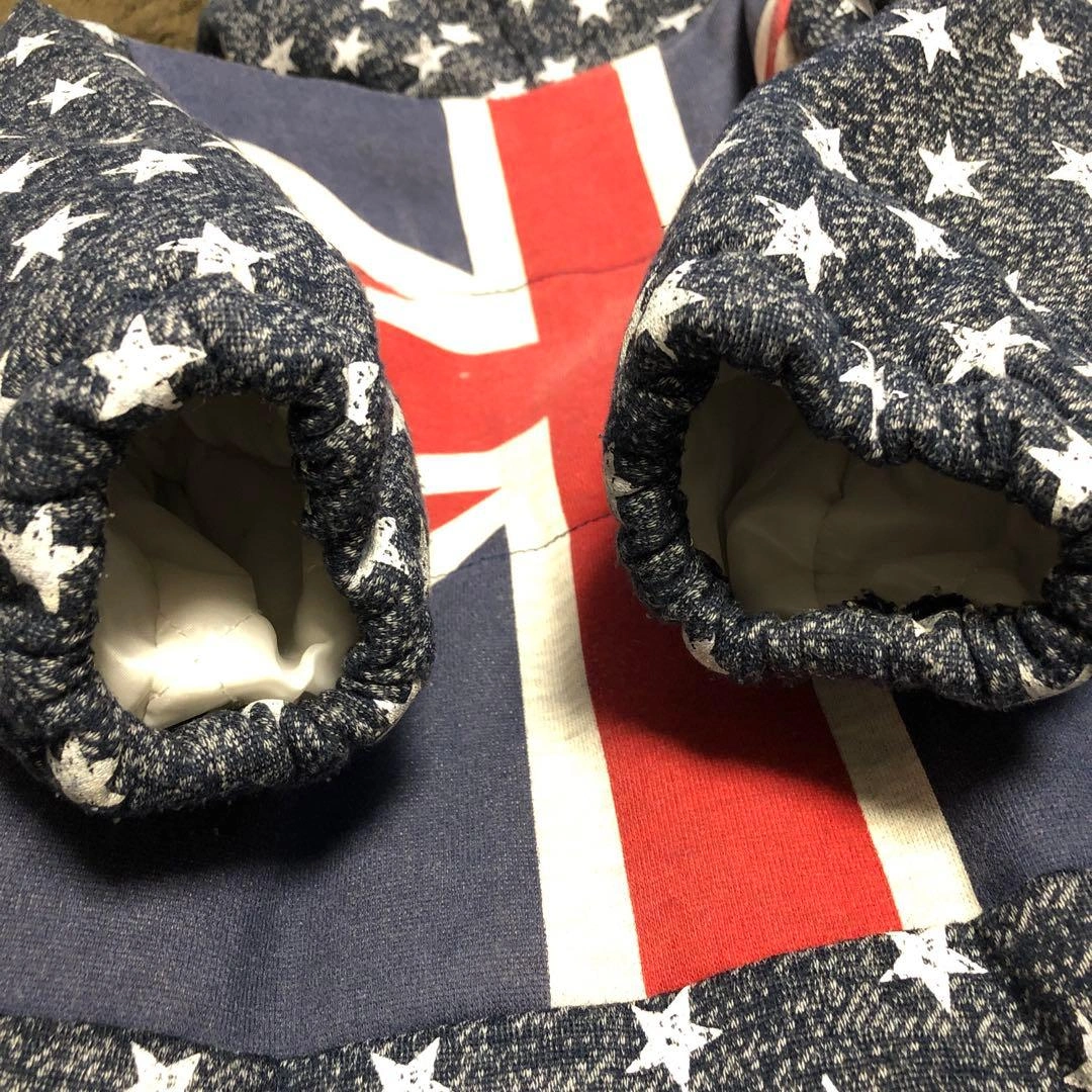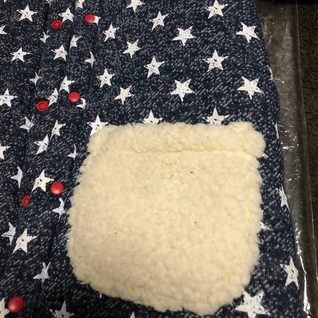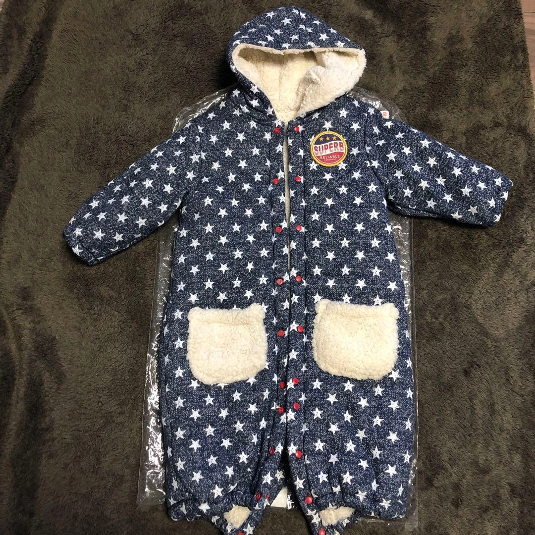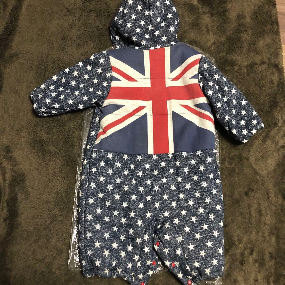 星柄とイギリス国旗のデザインのカバーオールです。内側はフリース素材で暖かいです。 毛足の長いもこもこ素材で厚みがあります。 足元はスナップボタンで、1つにも二股にもなるデザインです。 数回のみの使用です。 - デザイン: 星柄とイギリス国旗のデザイン - 素材: 内側はフリース素材 - ポケット: 前面に2つのポケット - フード: フード付き - サイズ: 95cm未満に適合 ご覧いただきありがとうございます。 ご希望の方はお気軽にご連絡ください。