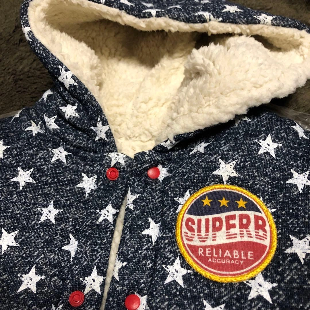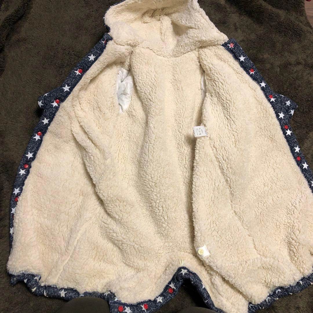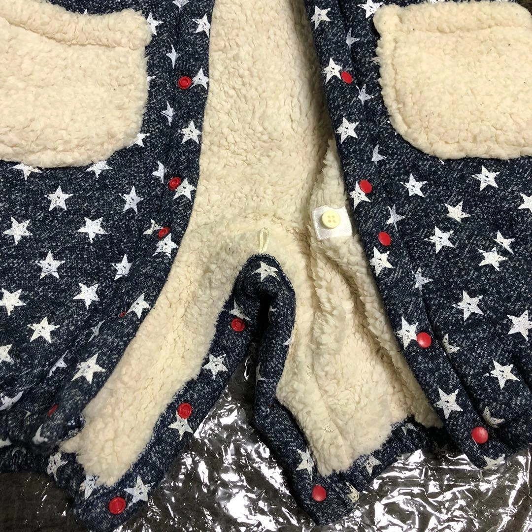 星柄とイギリス国旗のデザインのカバーオールです。内側はフリース素材で暖かいです。 毛足の長いもこもこ素材で厚みがあります。 足元はスナップボタンで、1つにも二股にもなるデザインです。 数回のみの使用です。 - デザイン: 星柄とイギリス国旗のデザイン - 素材: 内側はフリース素材 - ポケット: 前面に2つのポケット - フード: フード付き - サイズ: 95cm未満に適合 ご覧いただきありがとうございます。 ご希望の方はお気軽にご連絡ください。