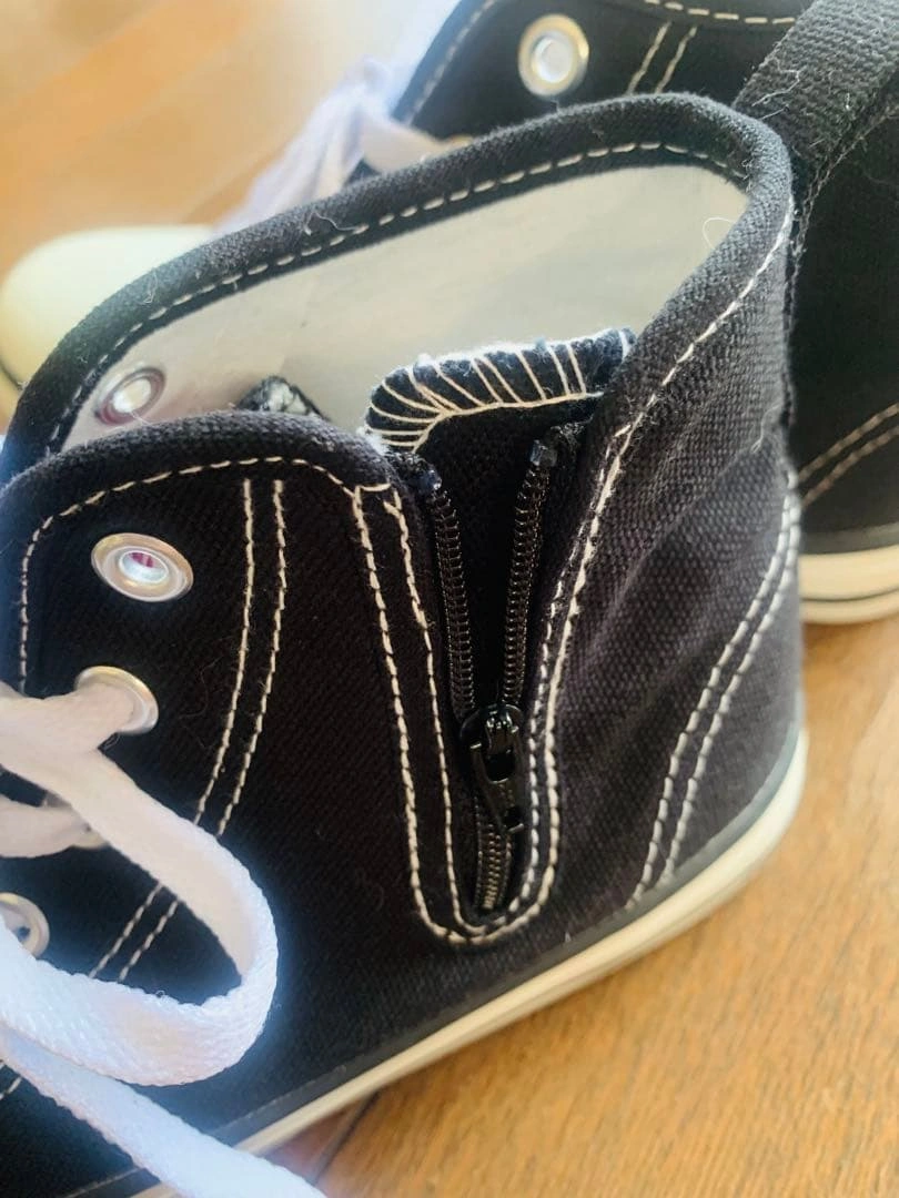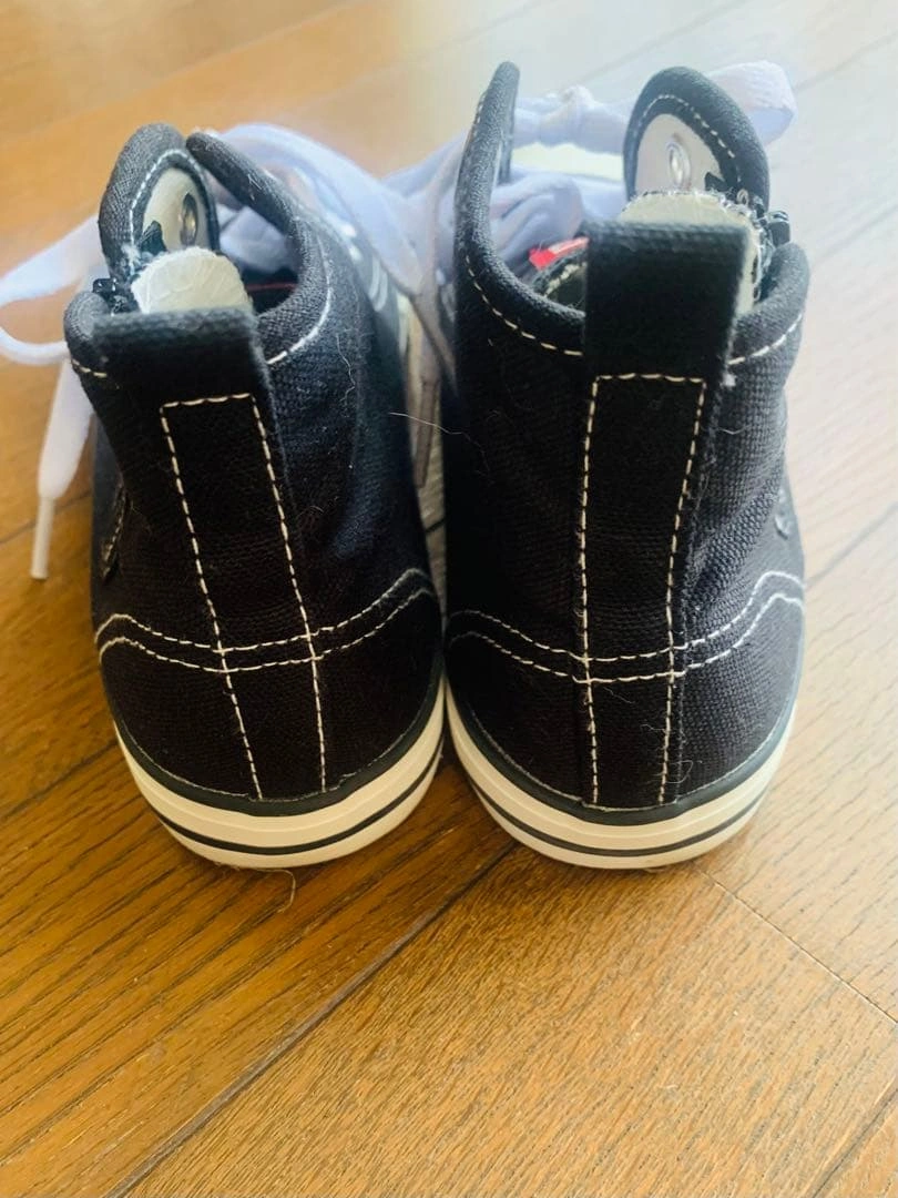 レディース、女児、ハイカット編み上げスニーカーです。脇ファスナー仕様で着脱しやすいかと思います。未使用品。 22cm カラー···ブラック 自宅保管品です。ご希望の方はお気軽にご連絡ください。