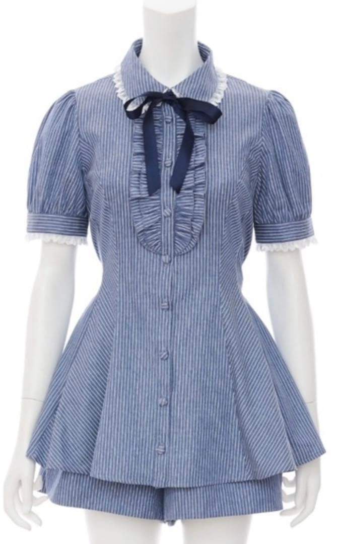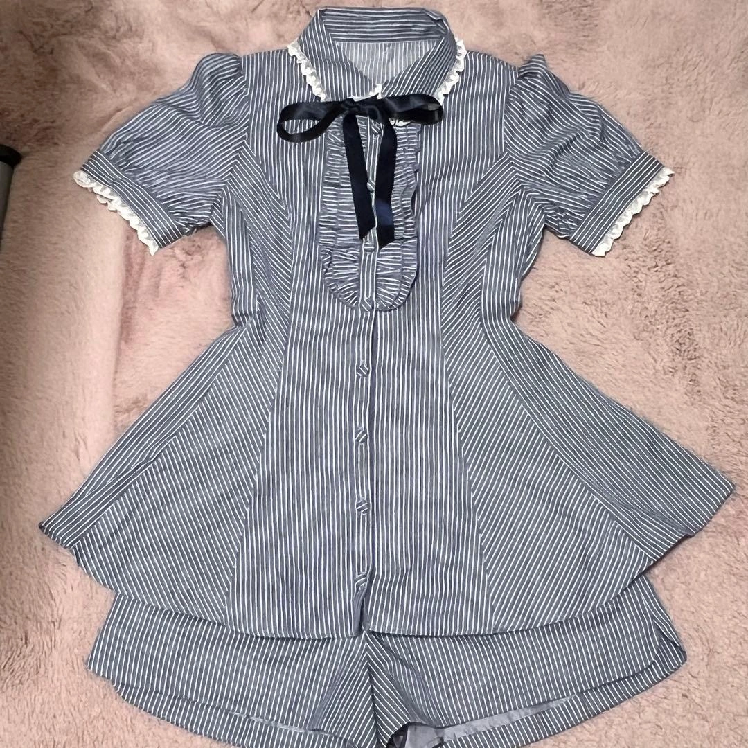 Secret Honeyの完売品です。 ダブルフリル半袖セットアップ フロントのフリルが可愛いセットアップで目を引くリボンがポイント! 後ろのリボンを結んでスタイルアップ効果も☆ 下はパンツになっているので安心して着用できます! フロントリボンは取り外し可能です。 シークレットハニー シーハニ セットアップ 参戦服 量産型コーデ フリル リボン #Secret Honey #量産型 #LIZLISA #AnkRouge #シークレットハニー