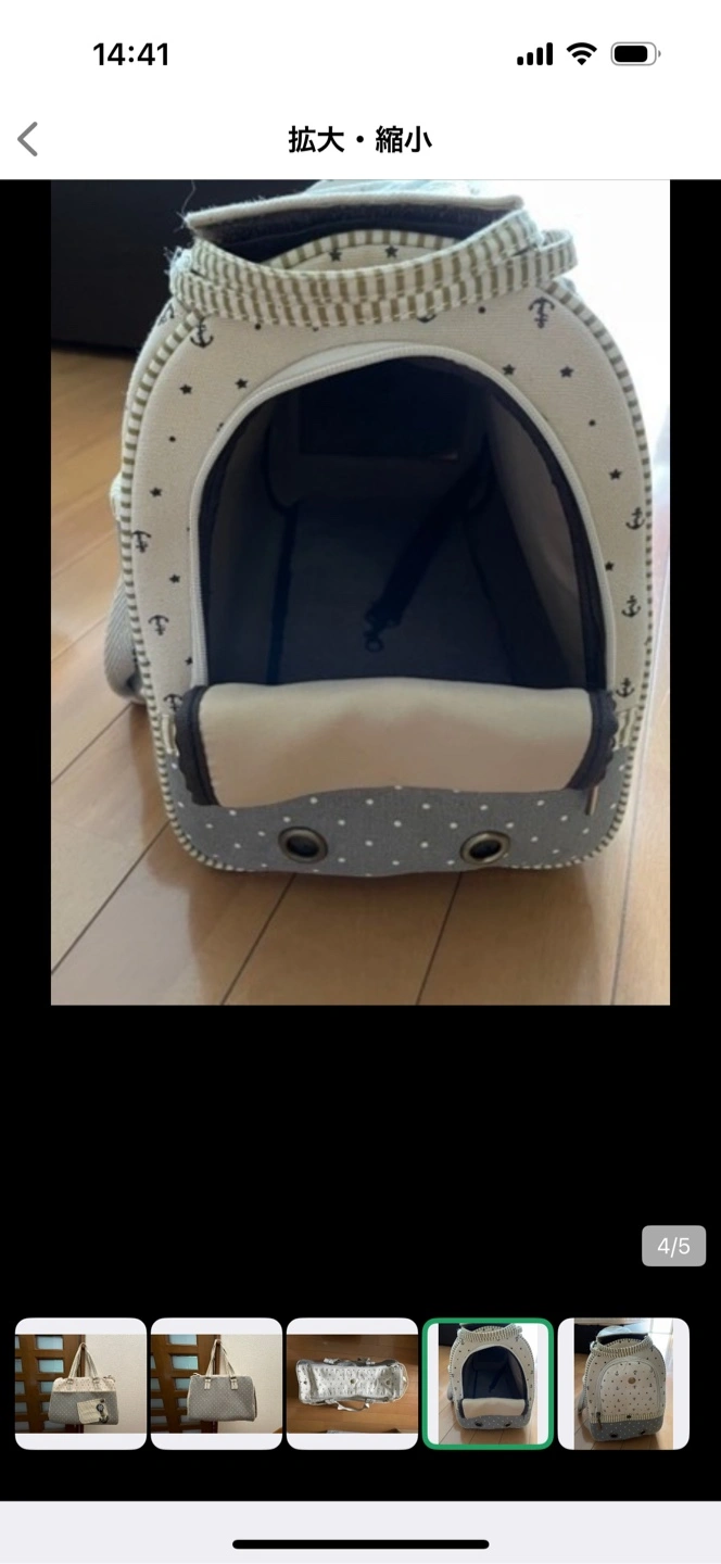 ペット用 ソフトキャリーケース 【おまけ付き】写真5枚目 当時6,000円位で購入 (わりと小さめなので体重3㎏ぐらいまでだと思います。) 上からも横からも出し入れでき、メッシュも付いてデザイン制にも優れています。 とてもかわいく5回ほど使用しましたが、サイズアウトしてしまいました。 ダメージや汚れなどはありませんが、中古品にご理解頂ける方お願い致します。 ※新品、未使用でも自宅保管のため、神経質な方はご遠慮ください。 また中古品に関しましても、素人検品のため見落としがあるかも知れませんので、ご理解頂ける方のみお願いいたします。 返品、返金はお受けできませんので、ご了承下さい。 質問やご要望がありましたら、お気軽にコメントお願いいたします! 他サイトにも出品しておりますので、突然の削除などありますことをご了承下さい。