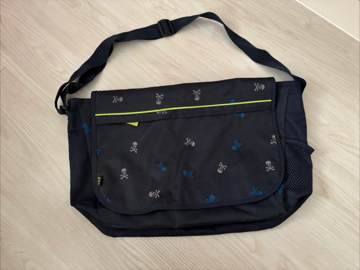 【中古GAP肩掛け斜め掛けバッグ】 大きめなのでたくさん物が入ります。 兄弟お揃いで短い期間習い事に使っていました。 目立つほどではあ りませんがよく見るとシミが数ヶ所あります(写真4枚目) 『サイズ』※素人採寸 約縦33×横46×マチ12 ※新品、未使用でも自宅保管のため、神経質な方はご遠慮ください。 また中古品に関しましても、素人検品のため見落としがあるかも知れませんので、ご理解頂ける方のみお願いいたします。 返品、返金はお受けできませんので、ご了承下さい。 質問やご要望がありましたら、お気軽にコメントお願いいたします! 他サイトにも出品しておりますので、突然の削除などありますことをご了承下さい。