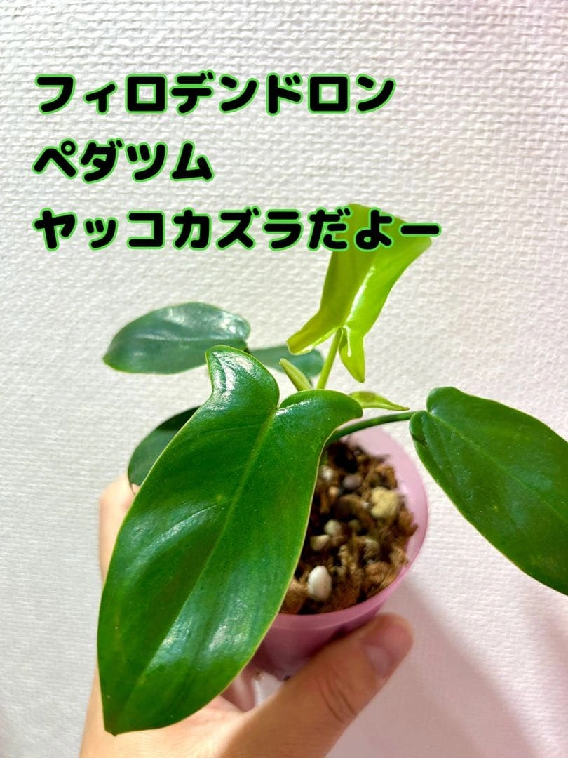 自家殖株です。 ペダツムの独特な葉形状が特徴です。艶々で手のひらサイズです。 最後の写真が親株の写真です。それの若苗となります。 新葉展開してきてます。かなり調子良いです。 ◯状態:とても良好、発根してから4ヶ月経過 ◯育てやすさ:初級、かなり強いです。 ◯用土:現在水耕栽培用ソイルに入っています、植え替え時はマルッと移し替えてください ◯育ち方:登り棒でも良いですが、吊り鉢にすると豪快に垂れてくれます ◯置き場所:曇り空程度の明るい戸外と、室内 直射日光にも多少耐えてくれますが、強すぎる日光は葉焼けします ◯容器:某メーカーのピンクプラ鉢入り ◯受け渡し場所:中央線三鷹駅から国分寺駅まで(その他ご相談ください) ◯受け渡し時間:ご相談 ご不明な点ございましたら、何なりとご質問ください。