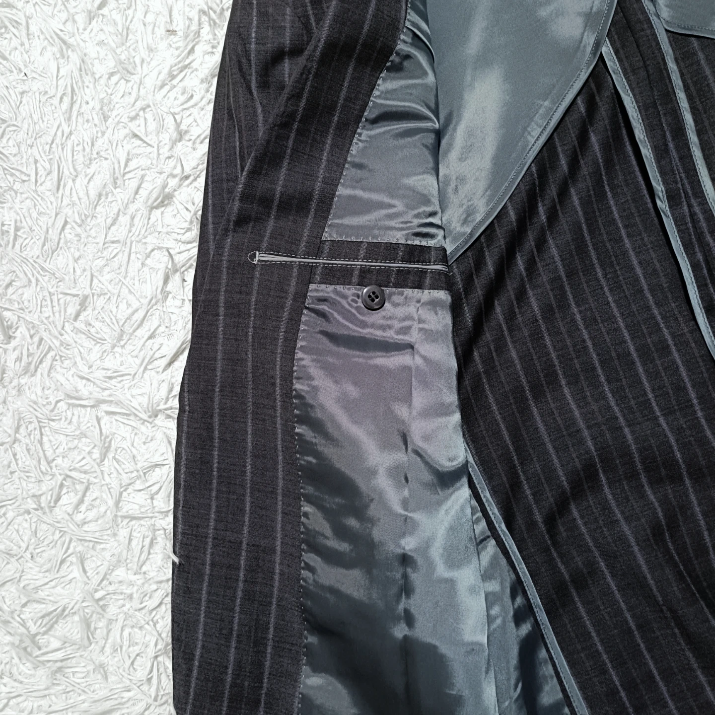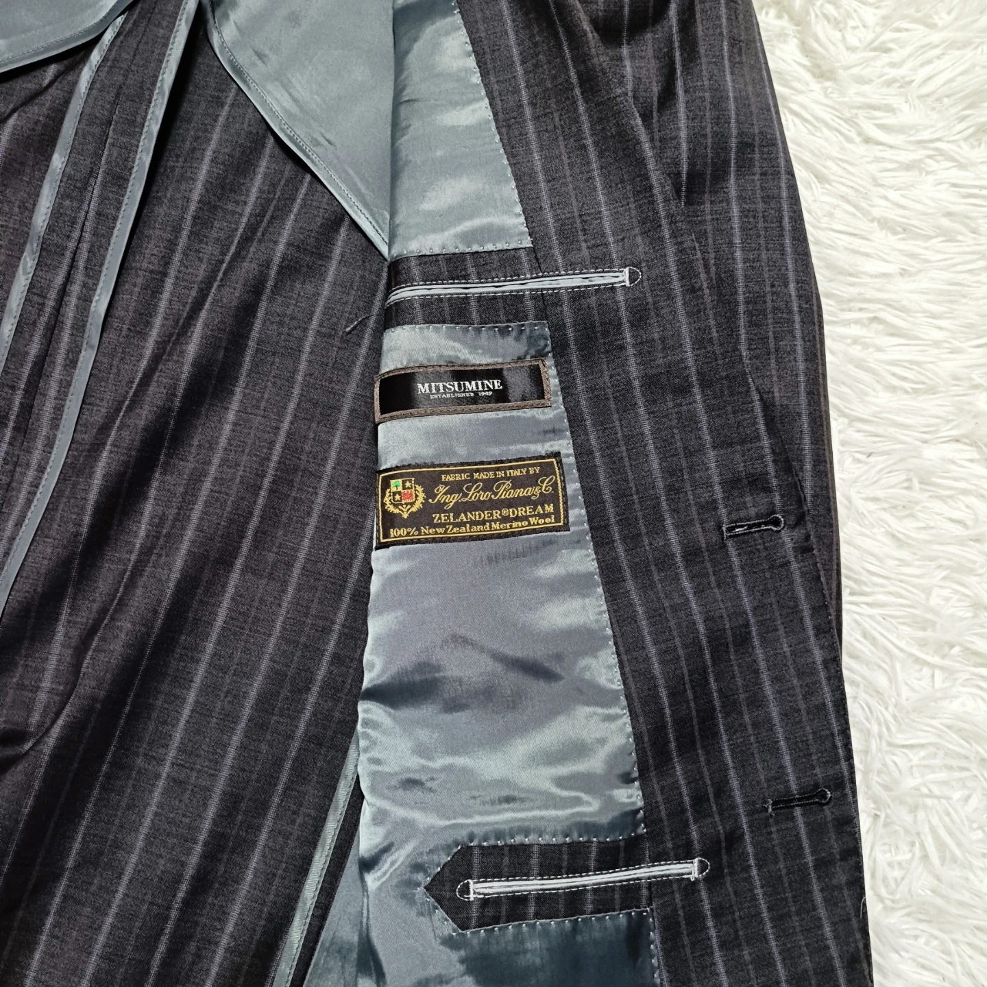 ご覧いただきありがとうございます! 日本屈指の老舗ブランド**「MITSUMINE(ミツミネ)」が、イタリアの名門「Loro Piana(ロロピアーナ)」**社の最高級生地「ZELANDER DREAM」を使用して仕立てた、極上のテーラードジャケットです。 深みのあるブラックに、洗練されたストライプが走るデザインで、光の当たり方によってロロピアーナ特有の上品な光沢が浮かび上がります。 □商品名□ 最高級生地 ロロピアーナ ミツミネ テーラードジャケット 100AB7 XL相当 □ブランド□ MITSUMINE ミツミネ □表記サイズ□ 100AB7(XL相当) ゆったりとしたAB体で、体格の良い方にも美しく着用いただけます。 □実寸サイズ(cm) □ 着丈:76 肩幅:48 身幅:55 袖丈:60 ※実寸につきまして多少の誤差はご了承ください。 ※表記サイズだけではなく実寸のサイズをご確認ください。 □カラー□ ブラック(黒) □素材□ 表地:ニュージーランド産メリノウール 100% 裏地:キュプラ、ポリエステル(袖通しの良い高級仕立て) □コンディション□ 左肩部分に解れのような部分があります。(画像3) 目立った汚れやダメージなど特にございません。 ※汚れはできる限り写真にて掲載しております。まずは画像をご確認ください。 どうぞよろしくお願い致します。 □商品管理番号□ X3-W-5639