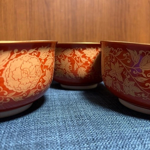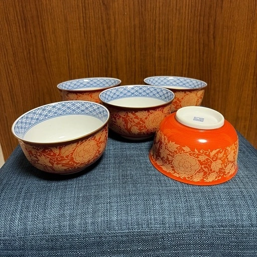 AIで調べたところ大吉窯の朱巻金彩 多様碗揃だそうです。 長年普段は使っていない倉庫(自宅内)の食器棚にあったものです。 あくまでも中古品ですのでご了承いただいた上でご購入ください。少し使用感あります。 直接のお取引を希望します。 場所日時によりますが、プラスでお値段をいただけましたら横浜市近郊、世田谷区、目黒区、渋谷区近郊であればご指定の場所付近にお持ちすることも可能です。