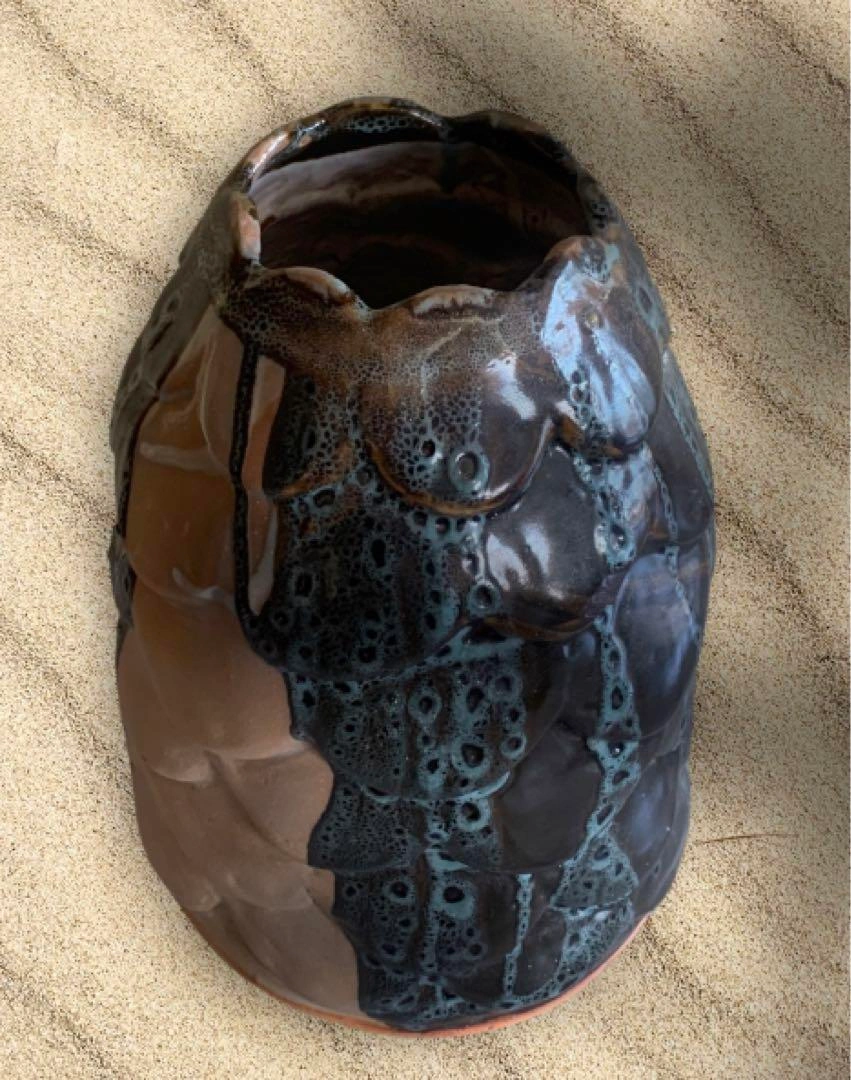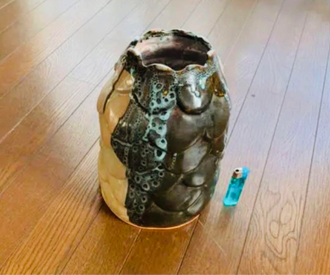 陶芸家の母のコレクションからの陶壺です。 興味深いデザインで、観る角度によって様々な表情があります。 釉薬、形、景色など、大変印象的でユニークな逸品です。 飾っているだけで迫力があります。 展示会出品作品で、以前18万の値がついており雑誌等にも掲載されましたが、以後自宅保管していました。 気に入って下さる方にお譲り出来たらと思います。 本体のみ。 唯一無二の作品なので、返品、返金は不可になります。ご了承下さい。 花器、花瓶、宝瓶、陶壺、置物として。 素材···陶器 テイスト···和モダン、靖陶苑 高さ··· 39 cm 幅... 17〜18cm ご希望の方はお気軽にご連絡ください。