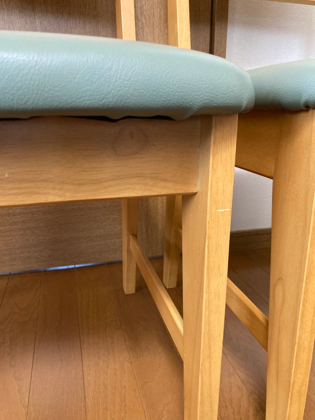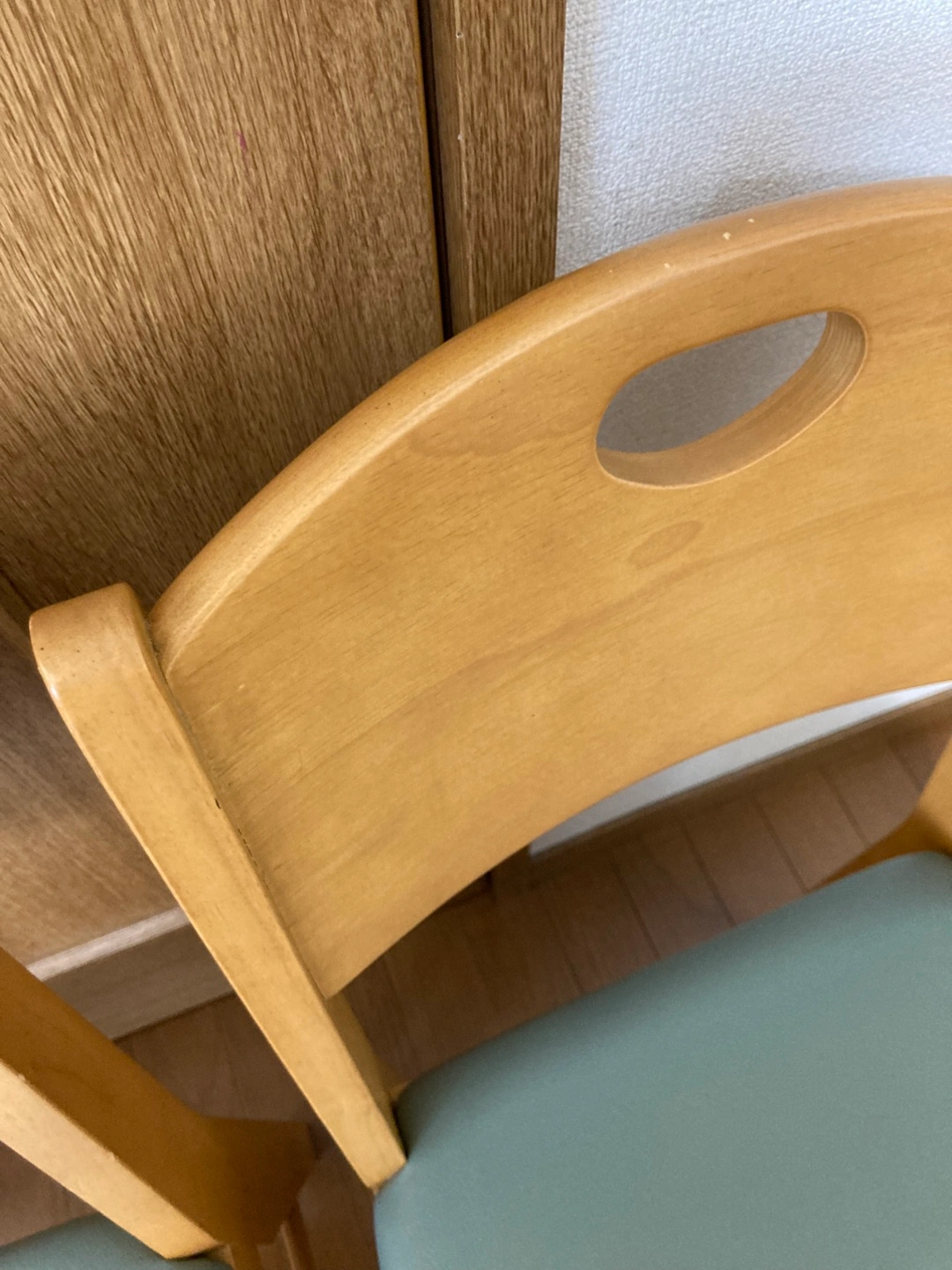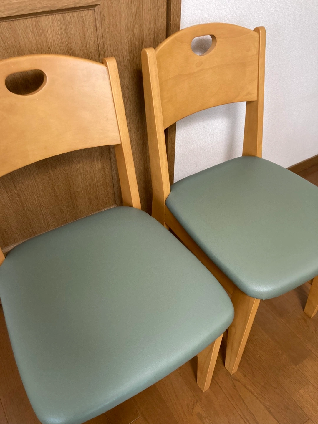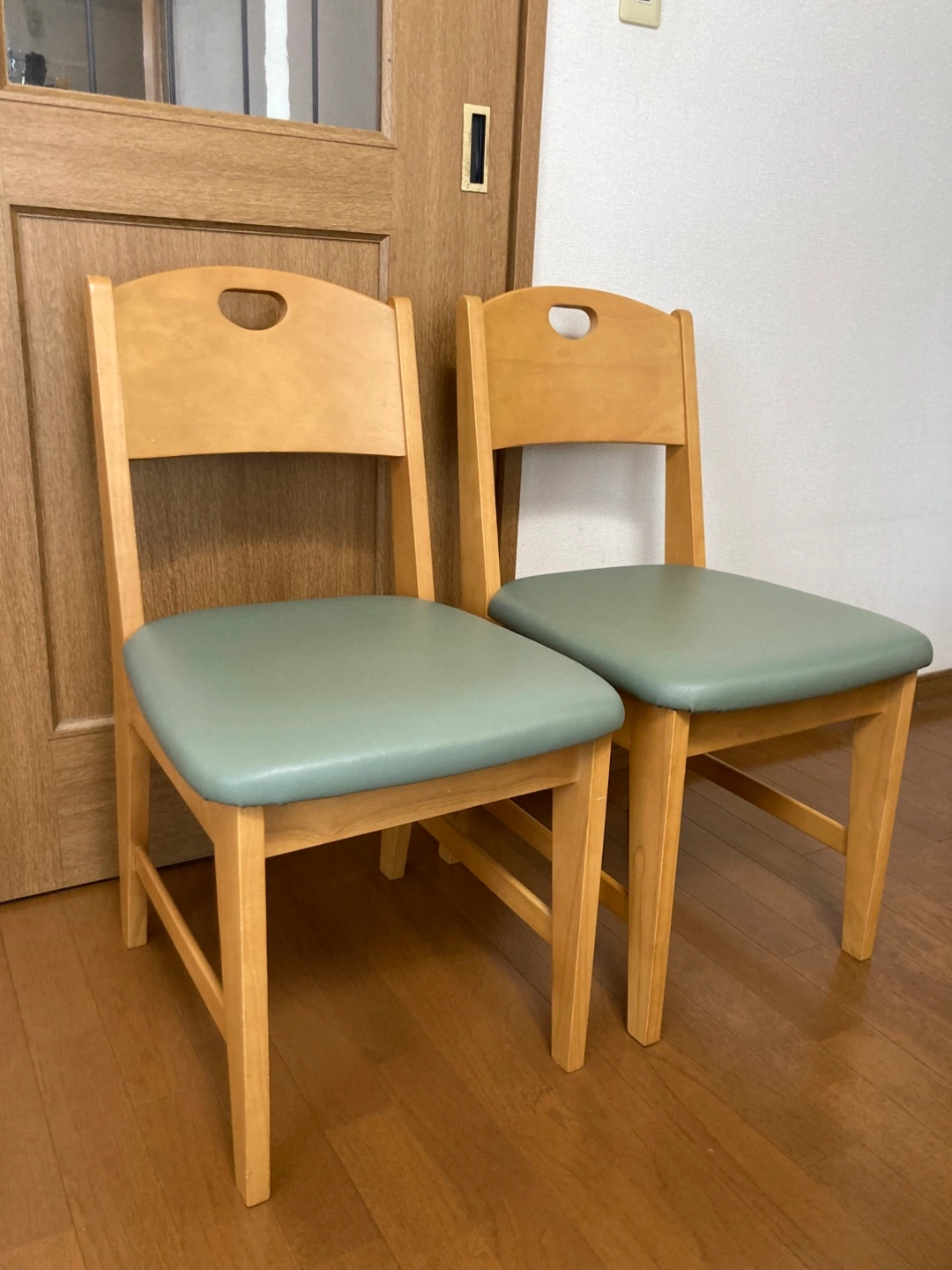 ・木製椅子1脚 ・座面の色:モスグリーン ・背もたれに手持ち用の穴あり 背もたれがしっかりしていて、座り心地の良いイスです。 実家の父母が使用しておりましたが、使わなくなりましたので、出品いたします。 出品にあたりキレイに磨きました。 小さ なキズ、スレ、汚れ、塗装剥がれがあります。 右側のイスは、経年による座面の色褪せが少しございますが、まだまだご使用いただけます。 1脚のみでも購入可能です。 車で受け渡しに行きます。 受け渡し場所は遠慮なくご相談ください。