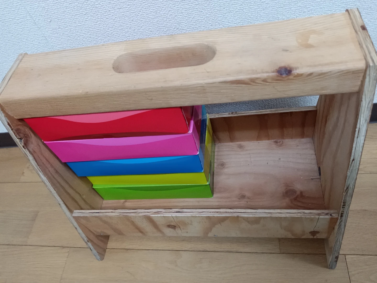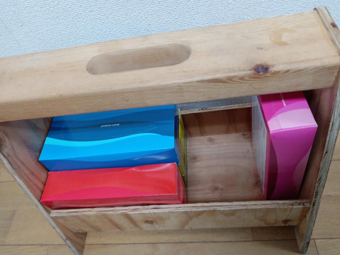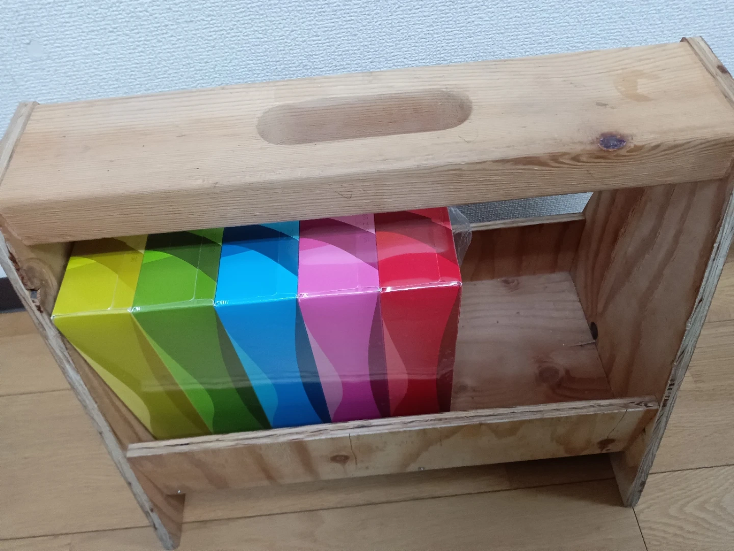 木製 花柄 バスケット+グリーン
