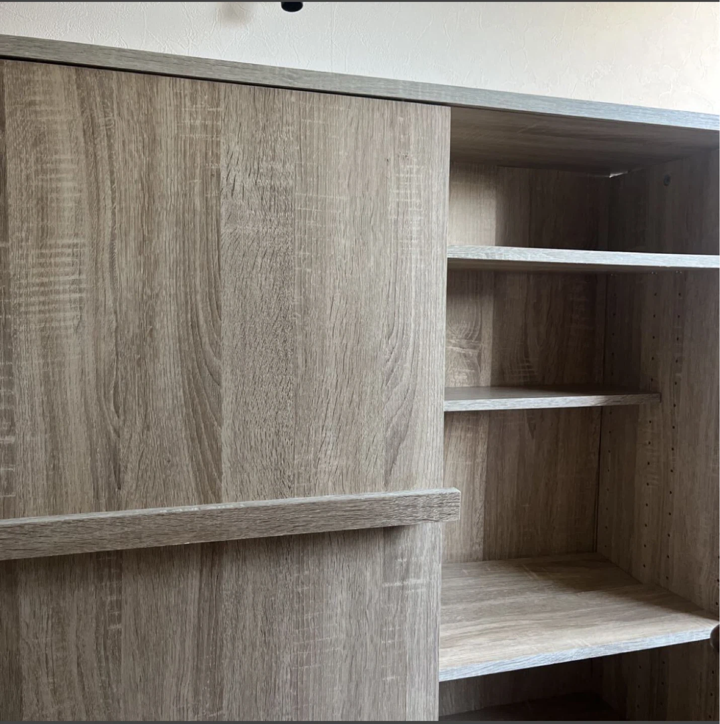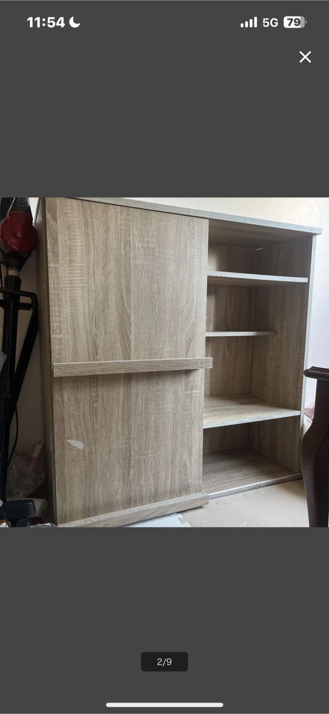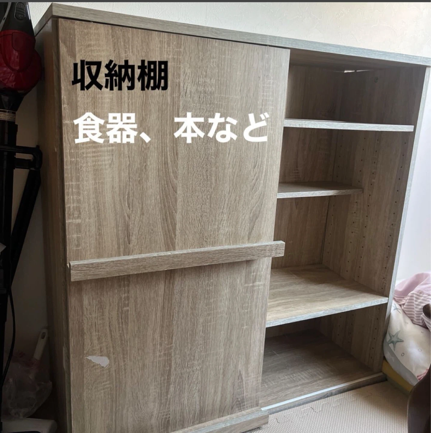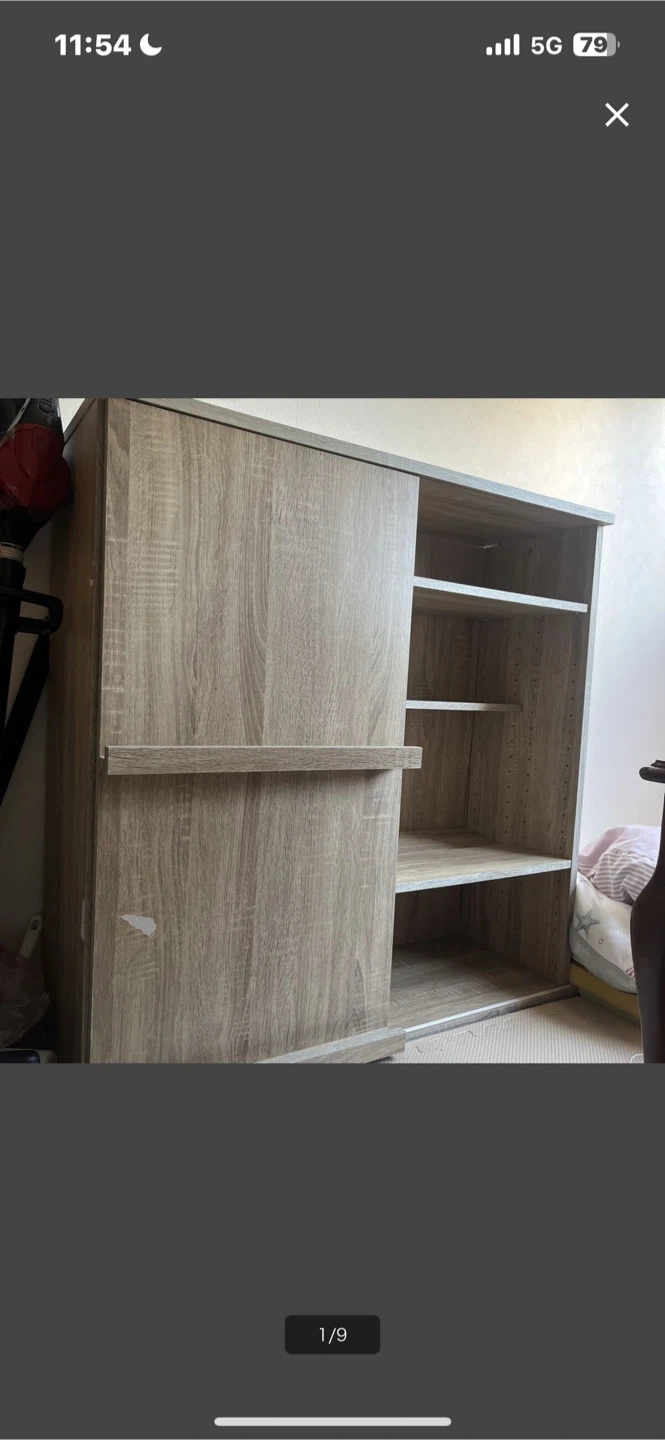 木製の収納棚です。 ・木目調 ・スライド式の扉 ・棚板あり 半年前に友人からもらって、 不要となったため出品します。 本棚やちょっとした書類整理の棚としていかがでしょうか。もちろん食器収納などあらゆる使い方もできます。 サイズ感は隣に映り込んでいる掃除機で比較してくださいませ。 できれば手渡しが嬉しいですが、手渡しでなければ発送とさせていただきます。もし手渡しなら送料はいただきませんが、発送となれば発送をいただきたいです。すみませんがよろしくお願いします。 表面の塗装が剥がれている部分や中身のガタ付いている部分は写真のとおりですが、使用感に問題はなく、気になれば100円ショップのものでDIYしていただければすぐに直るようなものです。