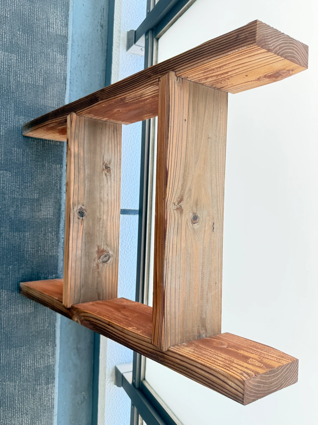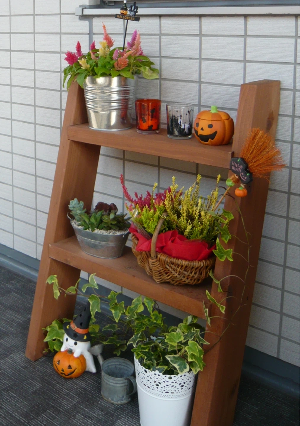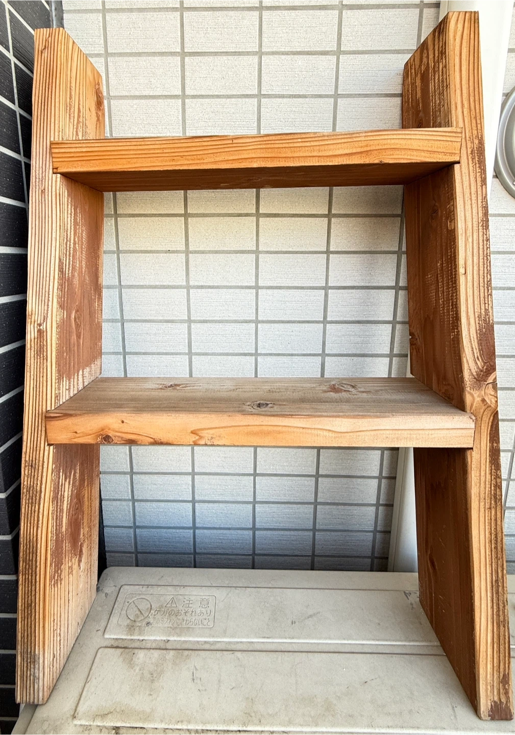 木製の2段ラック(ラダーラック ラダーシェルフ)です。 ベランダ等屋外で花台として使用していたので、全体的に使用感、汚れ、キズ、色むらありますが、まだまだお庭先やベランダ等でご使用していただけると思います。 写真一枚目は、購入当初のものです。 経年劣化程度は、他の写真を参考にしてください。 写真に写っている小物花等は販売に含まれません。 商品説明 壁に立てかけて使用する、はしご型の飾り棚です。 自立はしません。 サイズは、画像参考にしてください。 2段サイズ 組み立て不要の完成品 色 ミディアムブラウン 中古品などは、人により主観が違いますので、紹介文をよくお読みいただき、返品、購入後のクレーム等には対応出来ないことをご理解の上でご購入下さい。 神経質な方、完璧を求められる方、中古品、美品でも一度人の手に渡っているものだと言う事をご理解頂けない方のご購入は、トラブル防止のためお控え下さいませ。